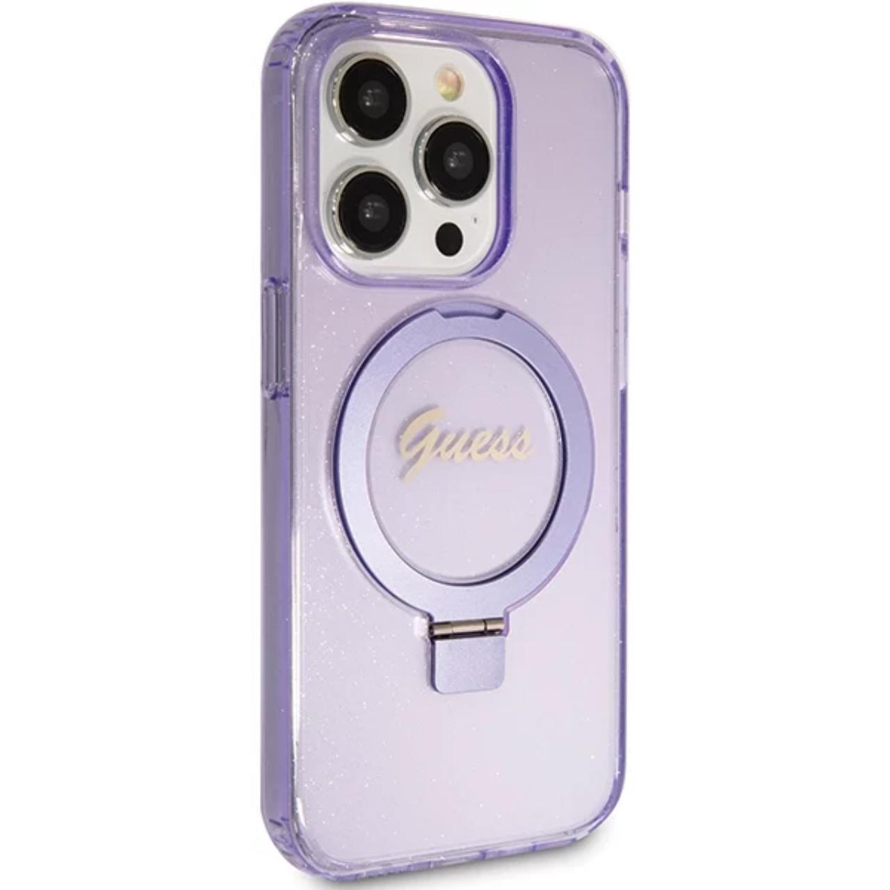 Guess Husa Ring Stand Glitter MagSafe iPhone 15 Pro Mov