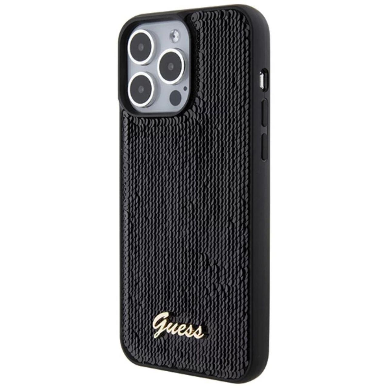 Guess Husa Sequin Script Logo iPhone 15 Pro Negru