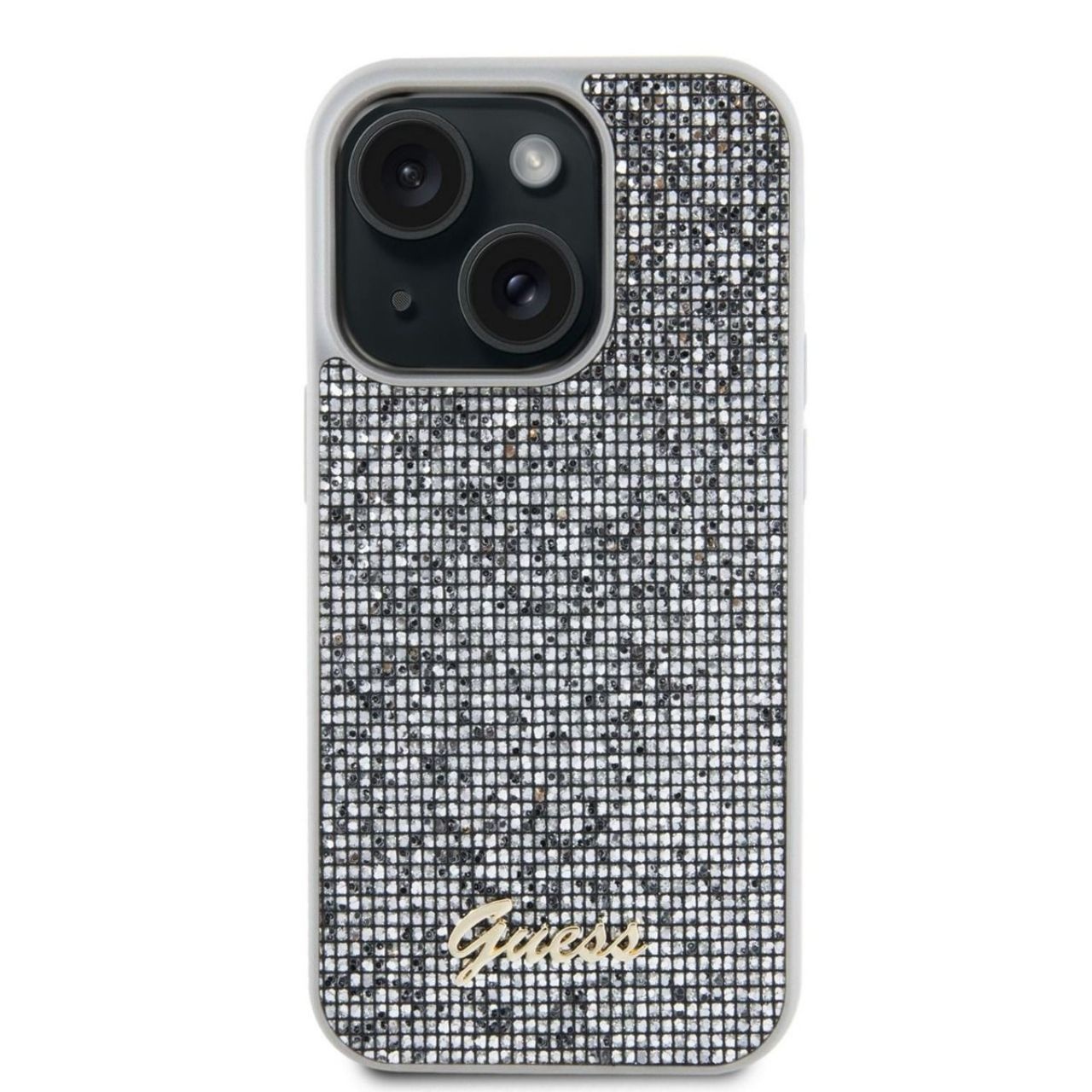 Guess Husa Square Mirror Script Logo iPhone 15 Argintiu