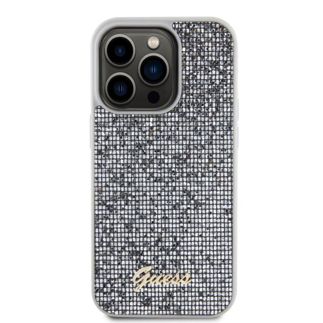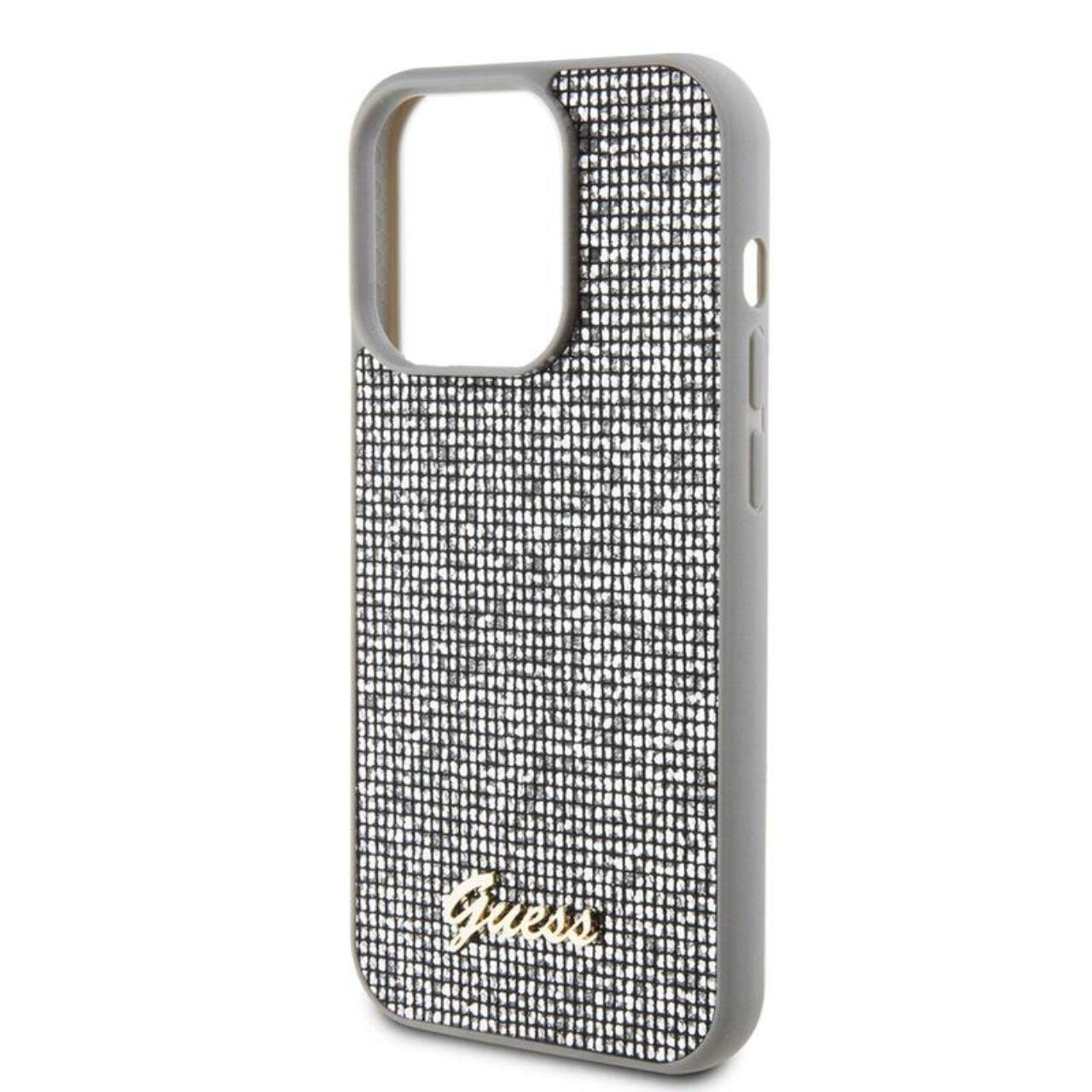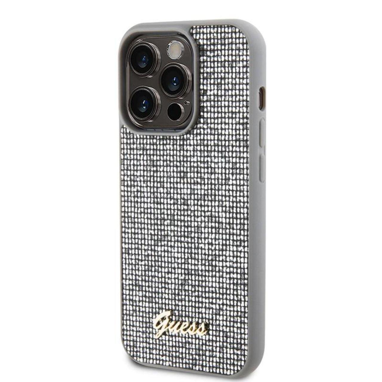 Guess Husa Square Mirror Script Logo iPhone 15 Pro Argintiu