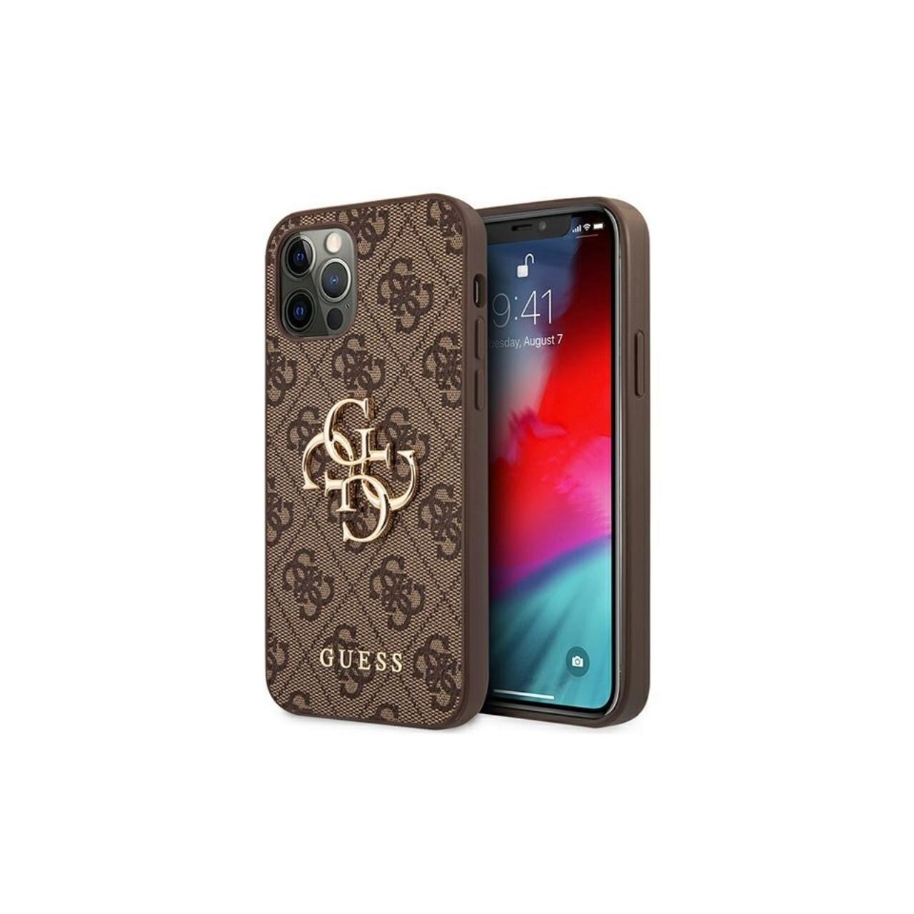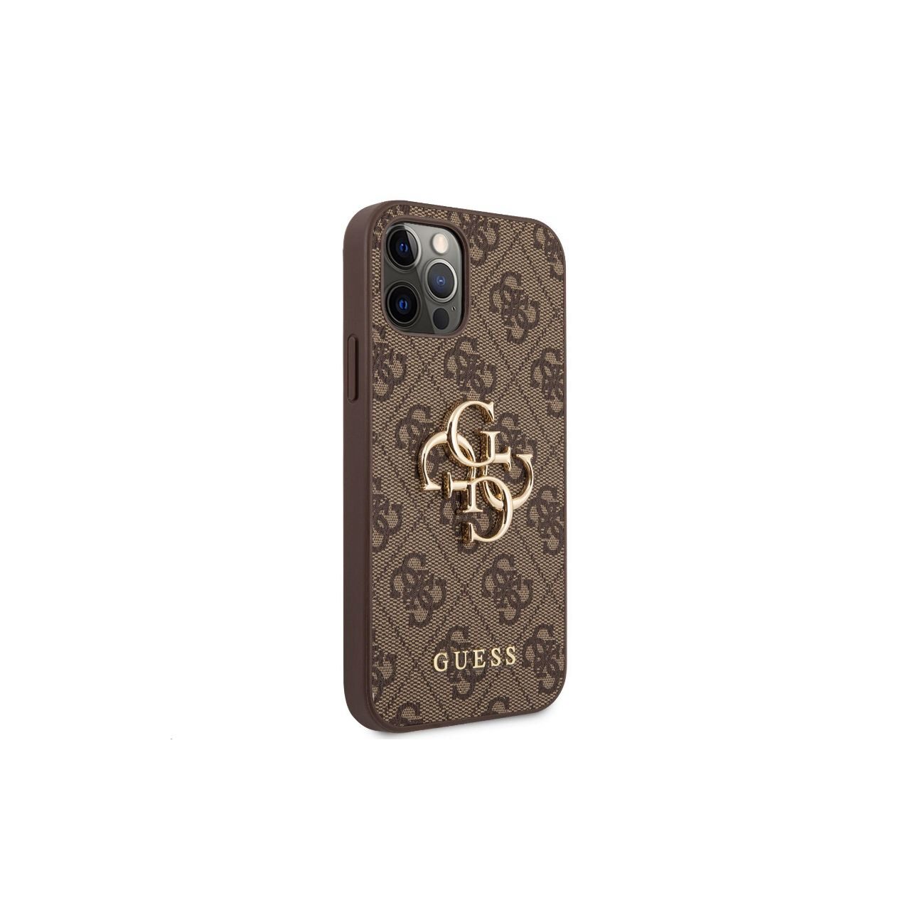 iPhone 12 / 12 Pro Case Guess PU 4G Metal Logo Brown