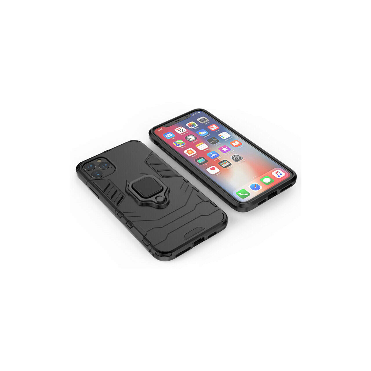 The Ring Armor Case Kickstand for iPhone 12 Pro Max is made of soft silicone and polycarbonate. The flexible edges take the shocks of a possible impact, and the hard back is resistant and protects against scratches by having a ring to support the phone or to use it more easily when taking pictures.