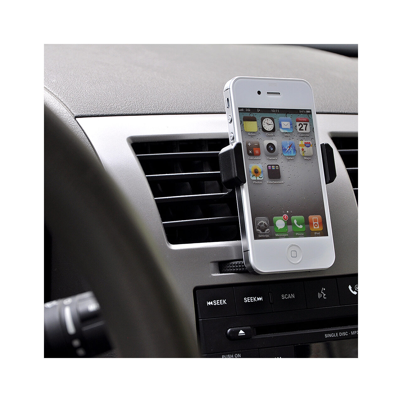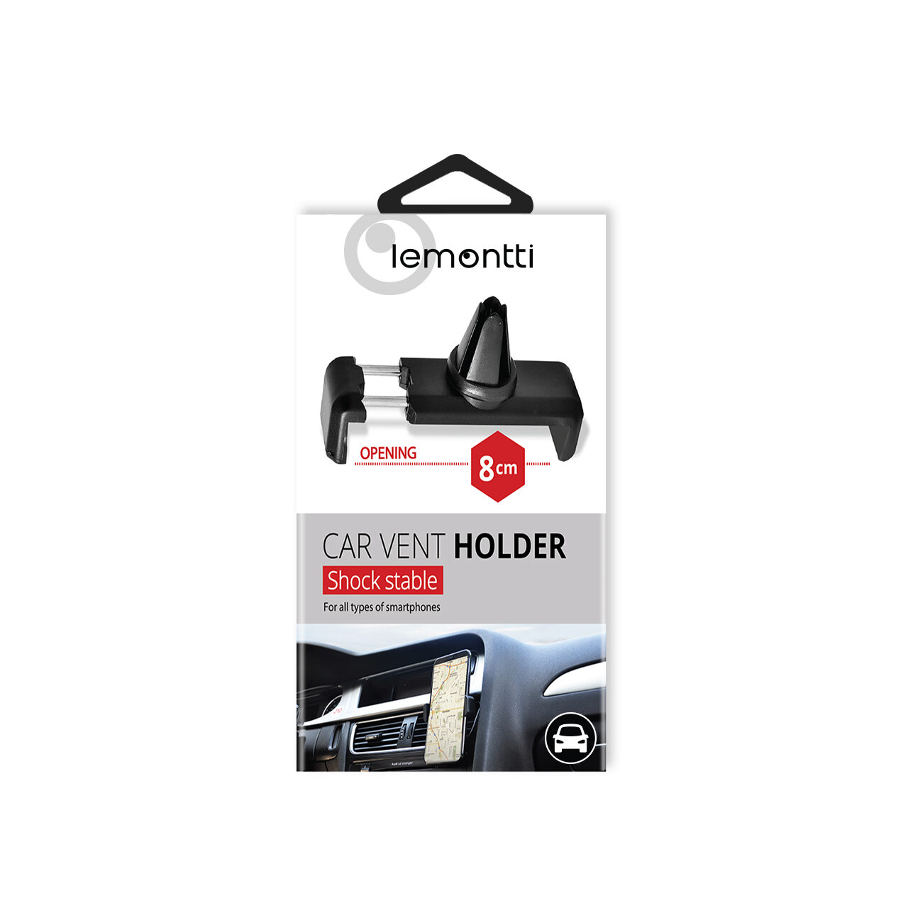 The car holder from Lemontti is the smallest universal car holder. It is very easily fixed in the ventilation grills with the blades and will firmly support your smartphone when you want to navigate with the help of your favorite applications or simply listen to music.