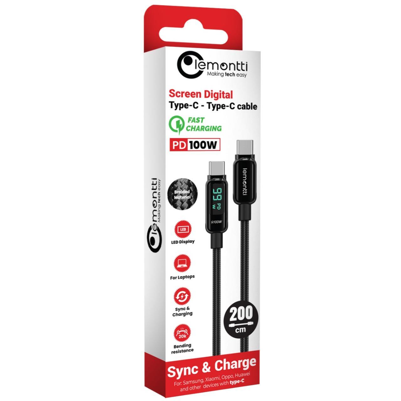 Lemontti Cablu Screen Digital Display Type-C la Type-C, Fast Charge, 100W, 2m, Negru -T.Verde 0.18 lei/buc
