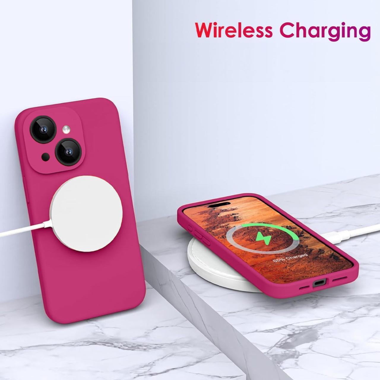 Lemontti Husa Liquid Silicon MagCharge iPhone 15 Plus Roze (protectie 360°, material fin, captusit cu microfibra)