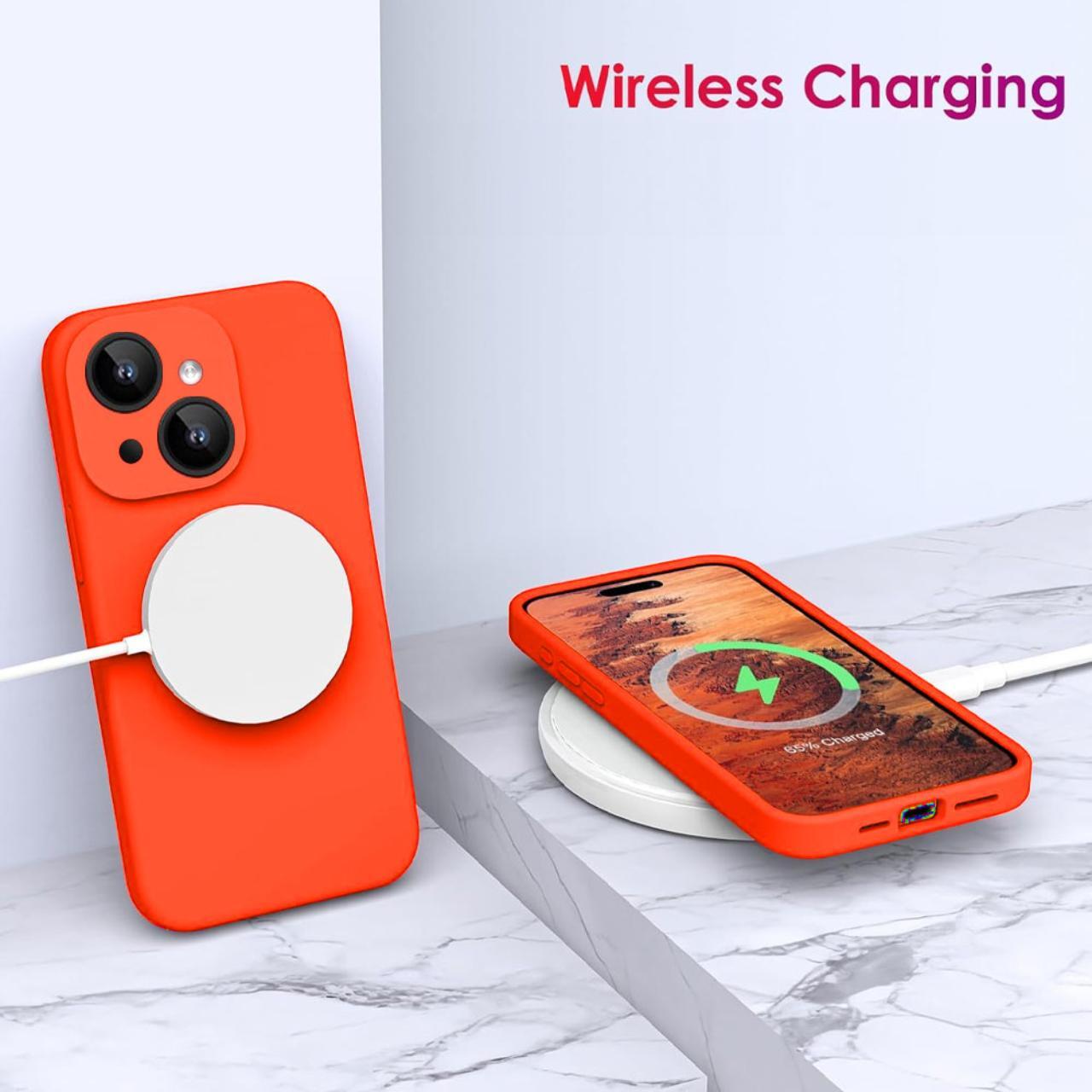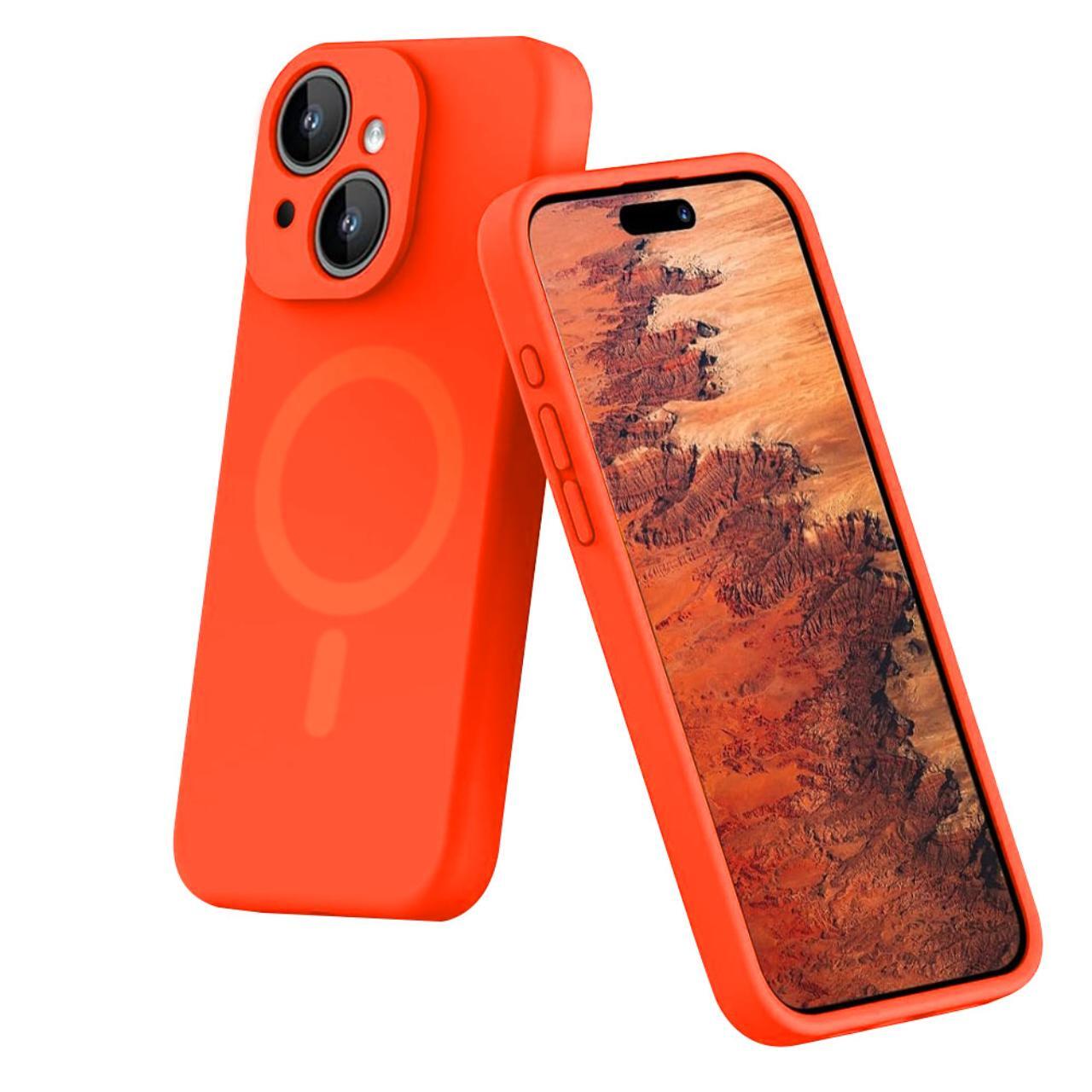 Lemontti Husa Liquid Silicon MagCharge iPhone 15 Portocaliu Neon (protectie 360°, material fin, captusit cu microfibra)