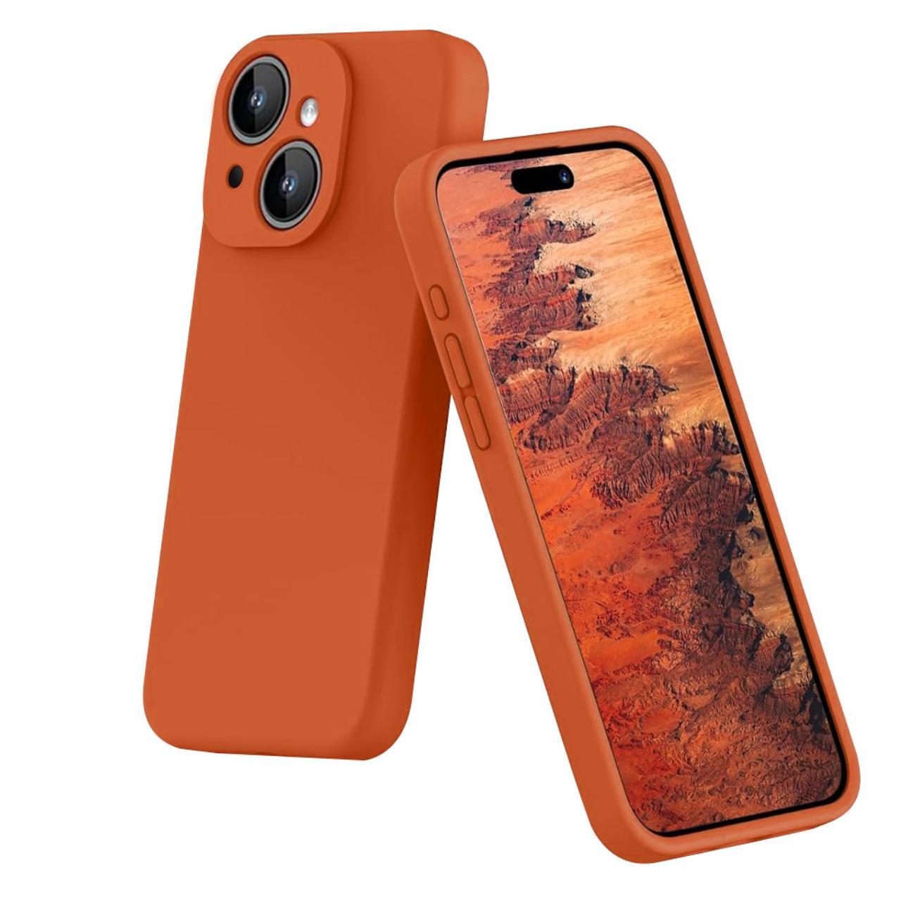 Lemontti Husa Liquid Silicon MagCharge iPhone 15 Portocaliu (protectie 360°, material fin, captusit cu microfibra)