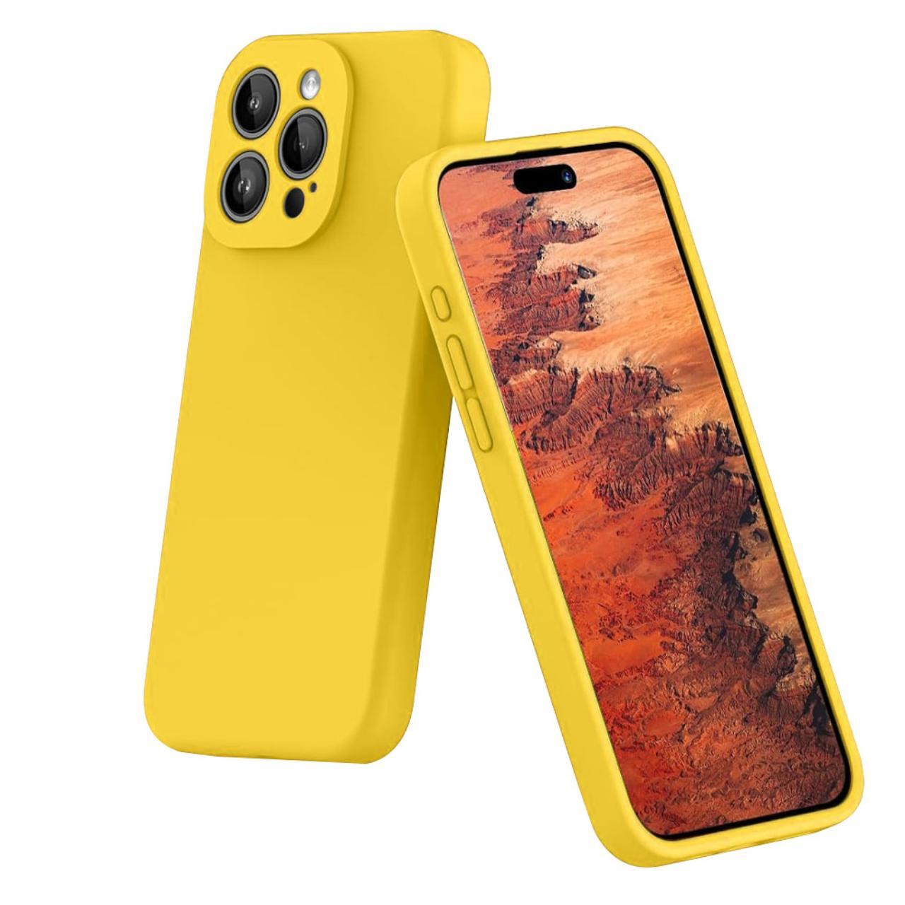 Lemontti Husa Liquid Silicon MagCharge iPhone 15 Pro Galben (protectie 360°, material fin, captusit cu microfibra)
