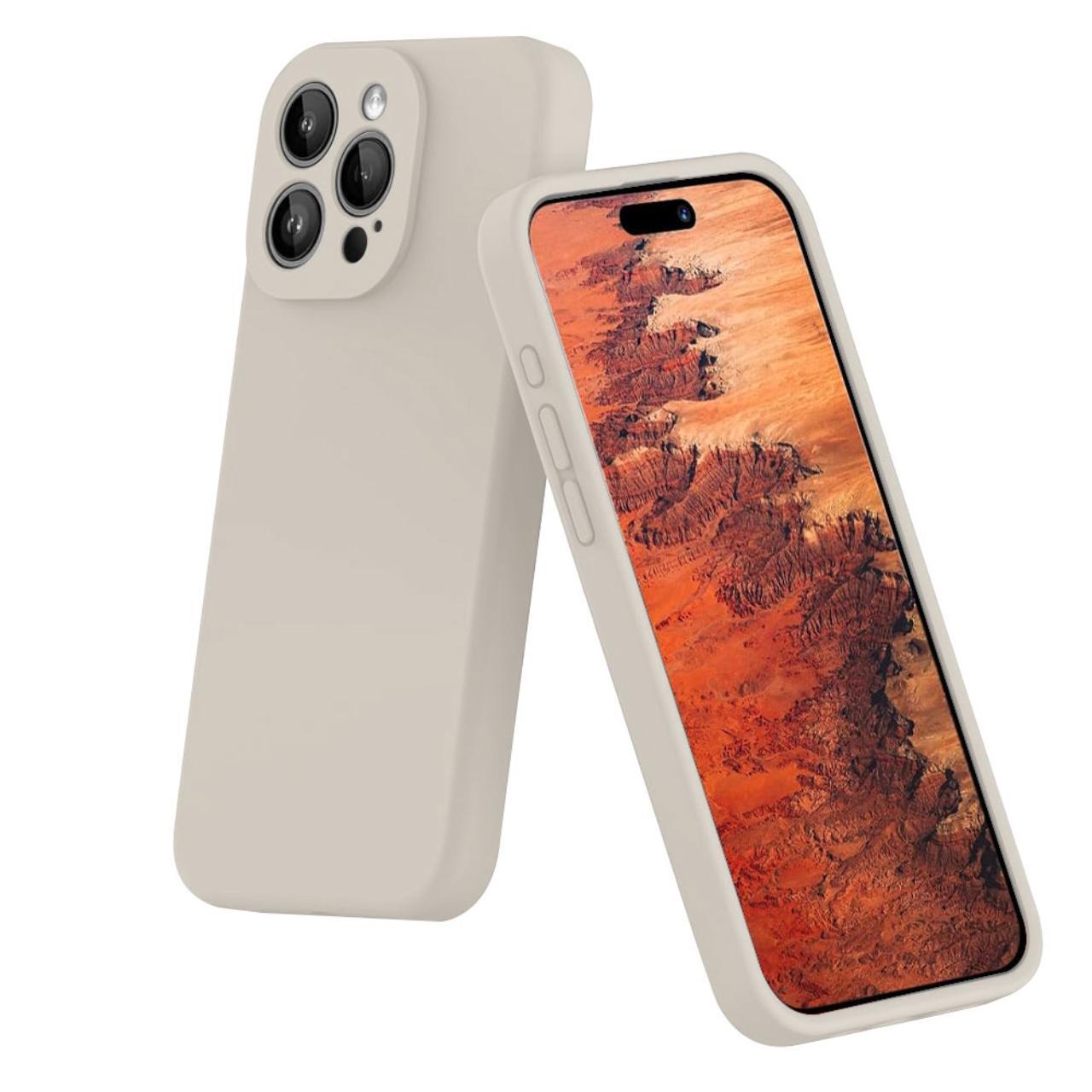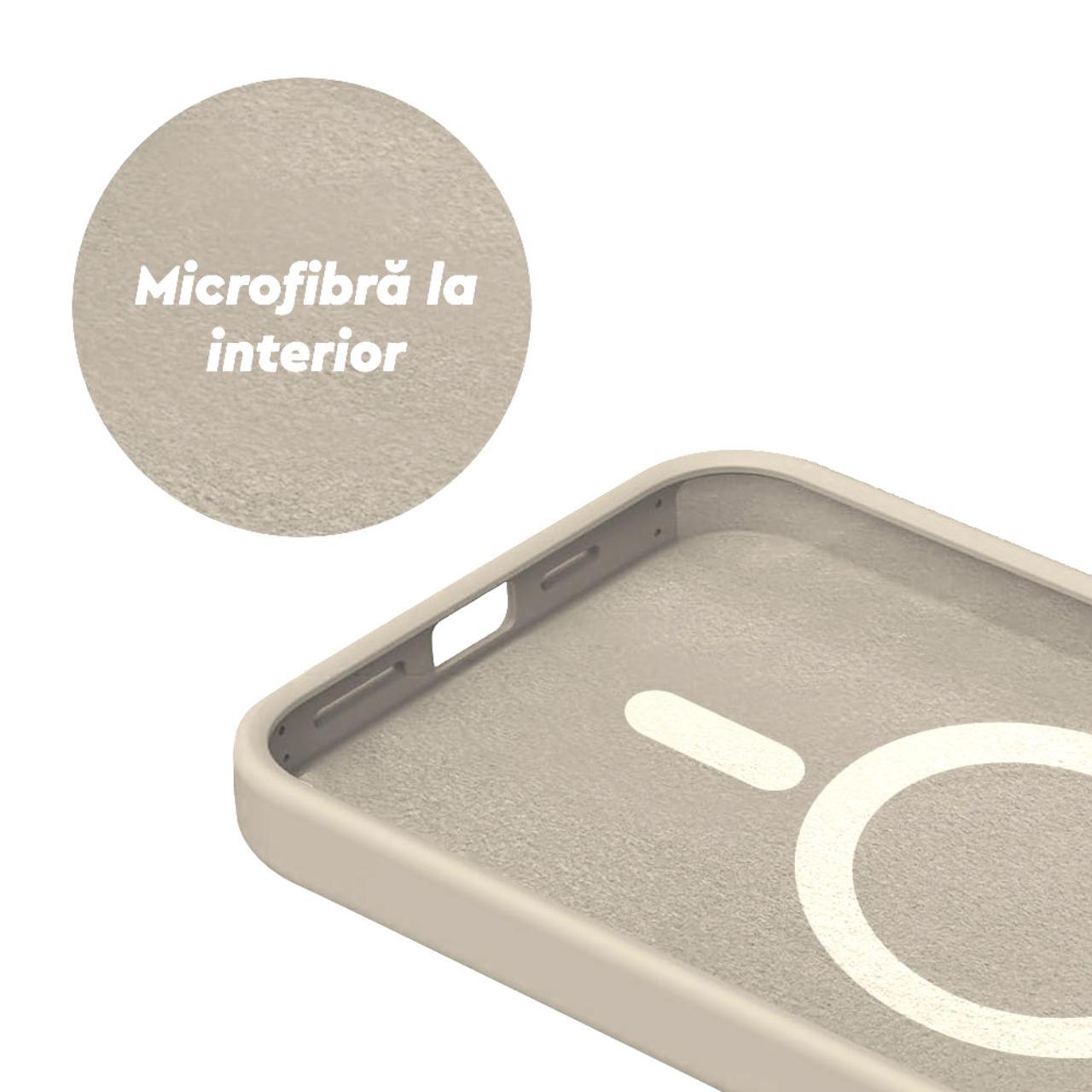 Lemontti Husa Liquid Silicon MagCharge iPhone 15 Pro Max Bej (protectie 360°, material fin, captusit cu microfibra)