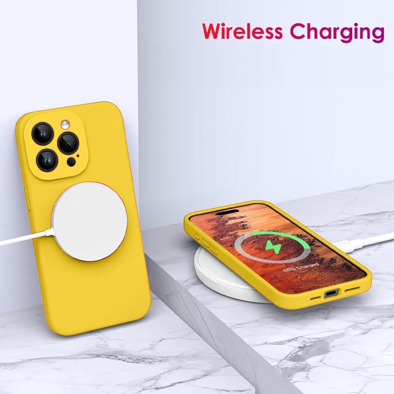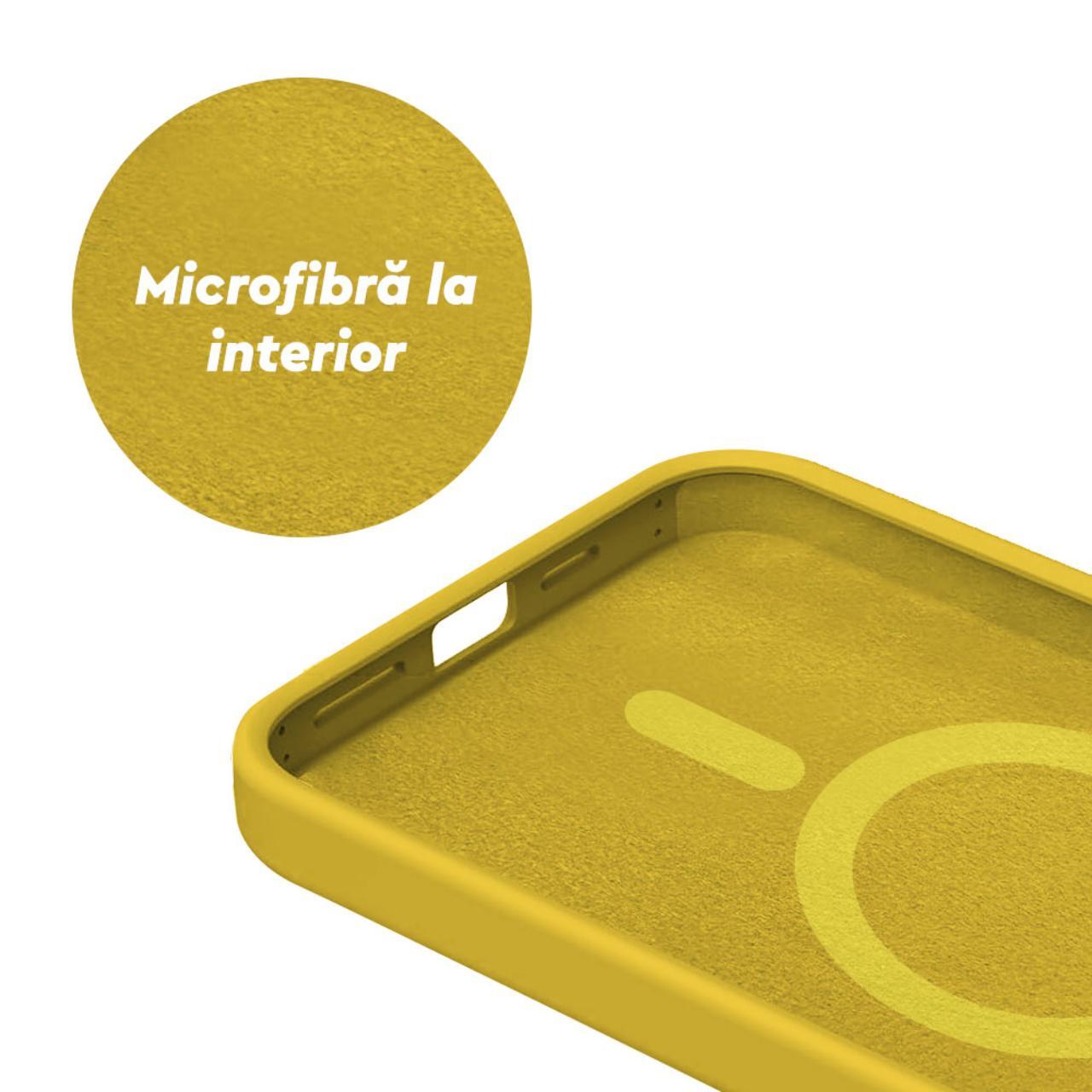 Lemontti Husa Liquid Silicon MagCharge iPhone 15 Pro Max Galben (protectie 360°, material fin, captusit cu microfibra)