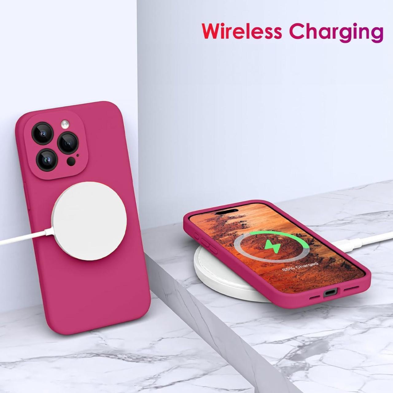 Lemontti Husa Liquid Silicon MagCharge iPhone 15 Pro Max Roze (protectie 360°, material fin, captusit cu microfibra)