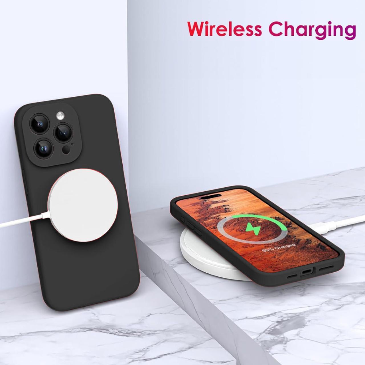 Lemontti Husa Liquid Silicon MagCharge iPhone 15 Pro Negru (protectie 360°, material fin, captusit cu microfibra)