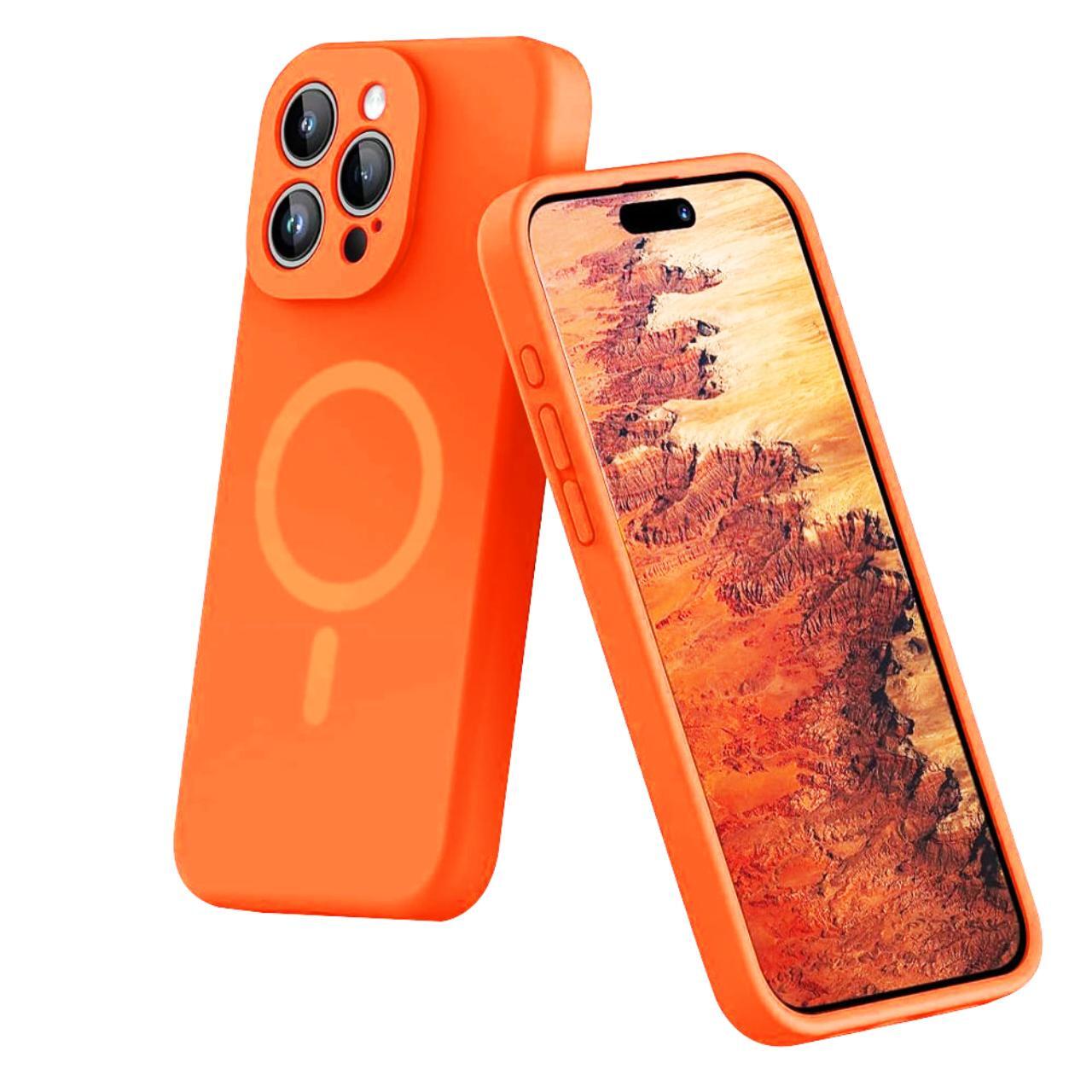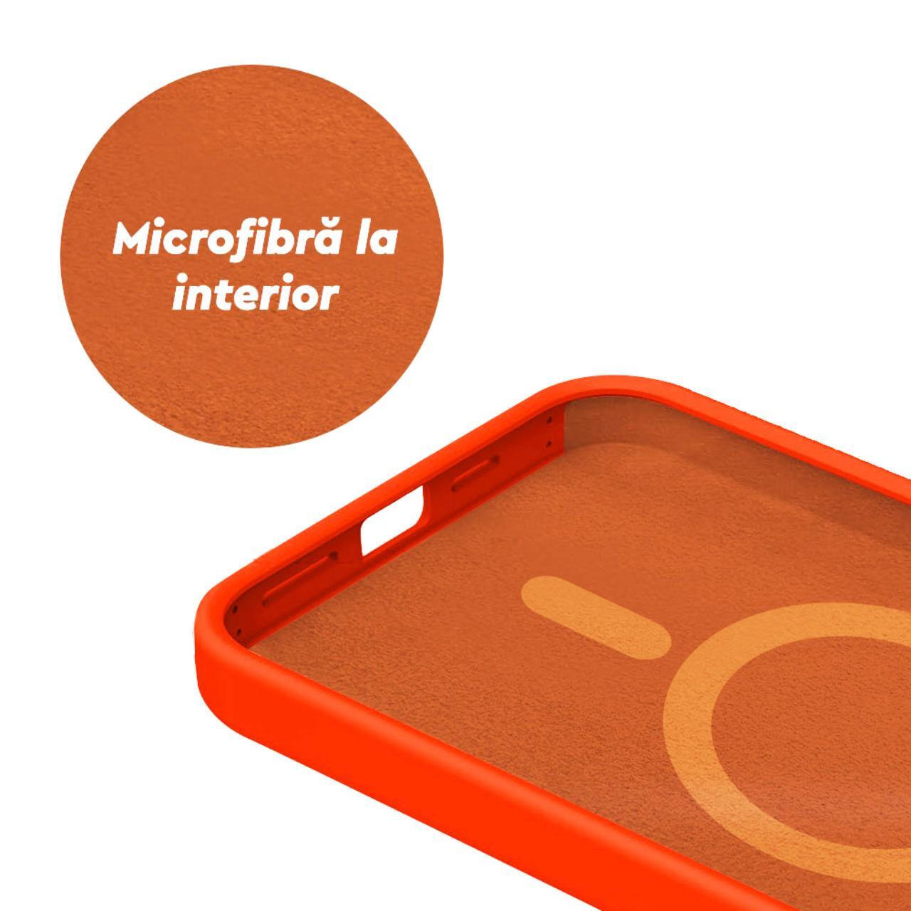 Lemontti Husa Liquid Silicon MagCharge iPhone 15 Pro Portocaliu Neon (protectie 360°, material fin, captusit cu microfibra)