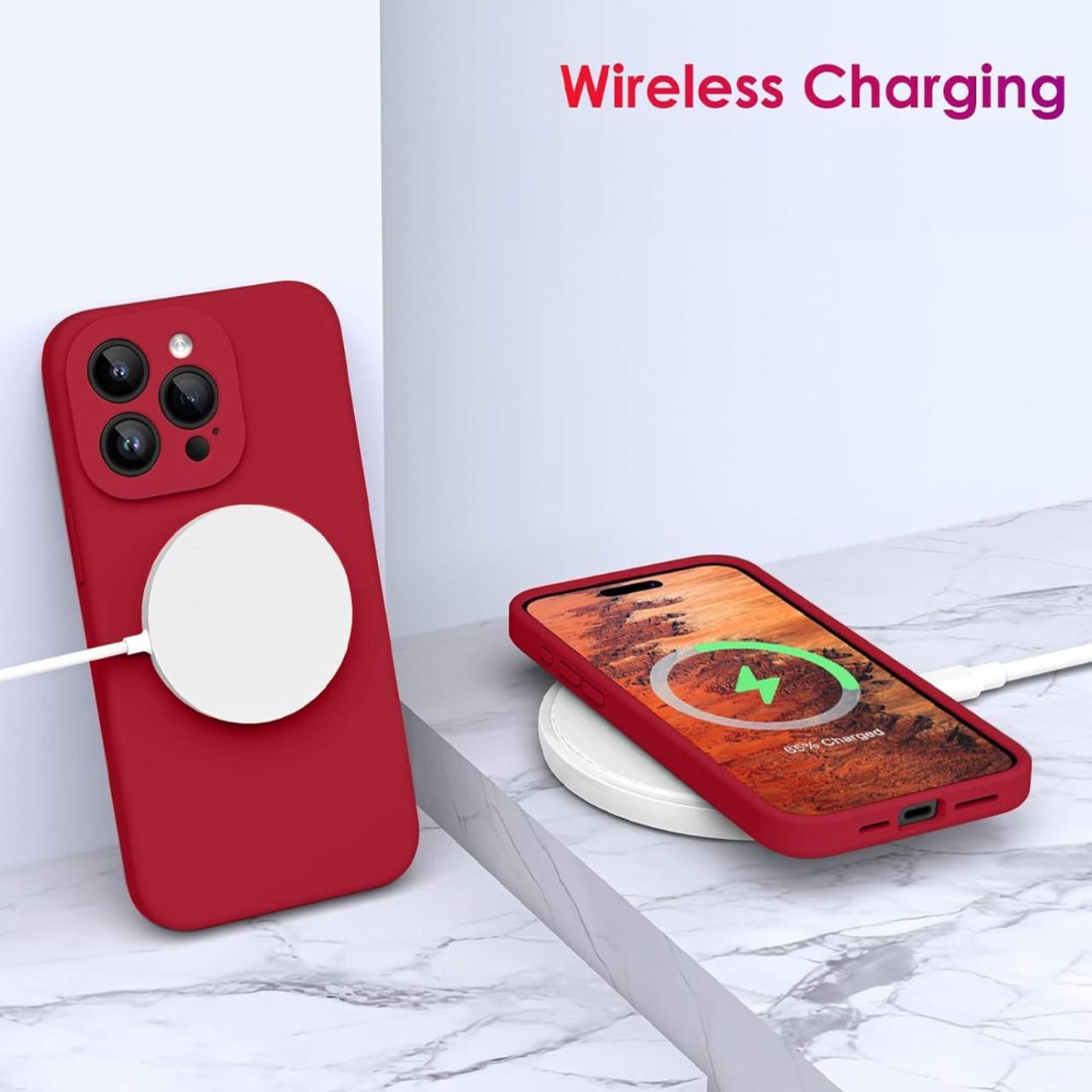 Lemontti Husa Liquid Silicon MagCharge iPhone 15 Pro Visiniu (protectie 360°, material fin, captusit cu microfibra)