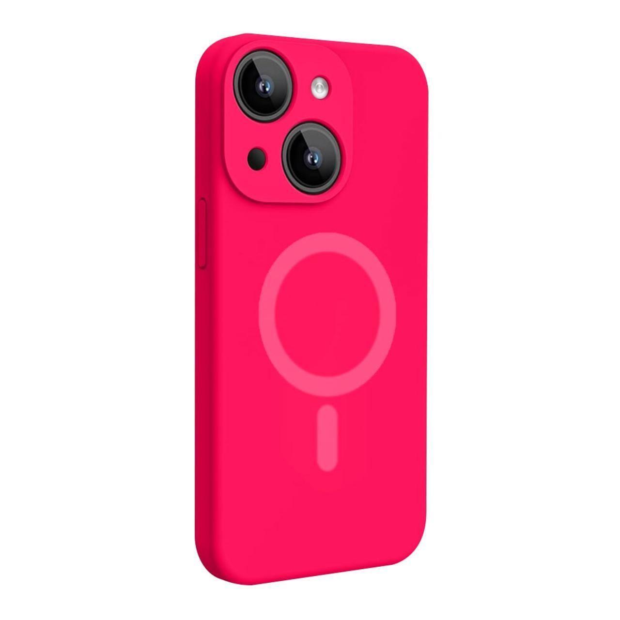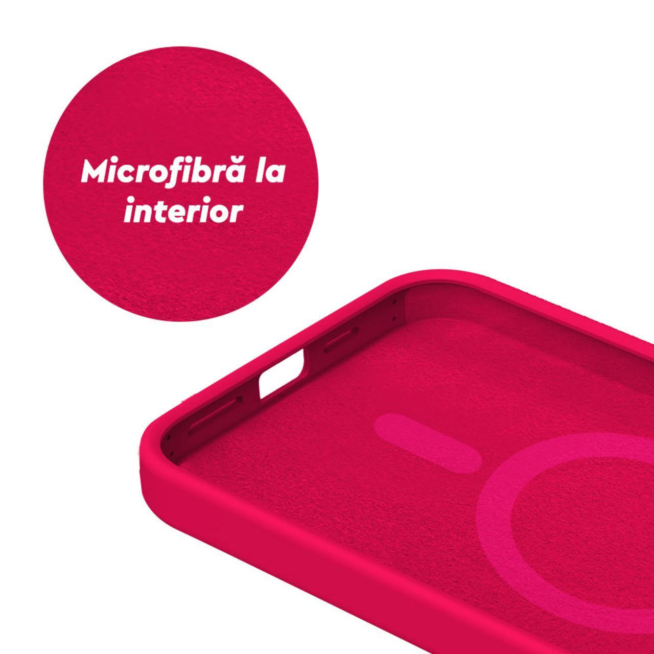 Lemontti Husa Liquid Silicon MagCharge iPhone 15 Roz Neon (protectie 360°, material fin, captusit cu microfibra)