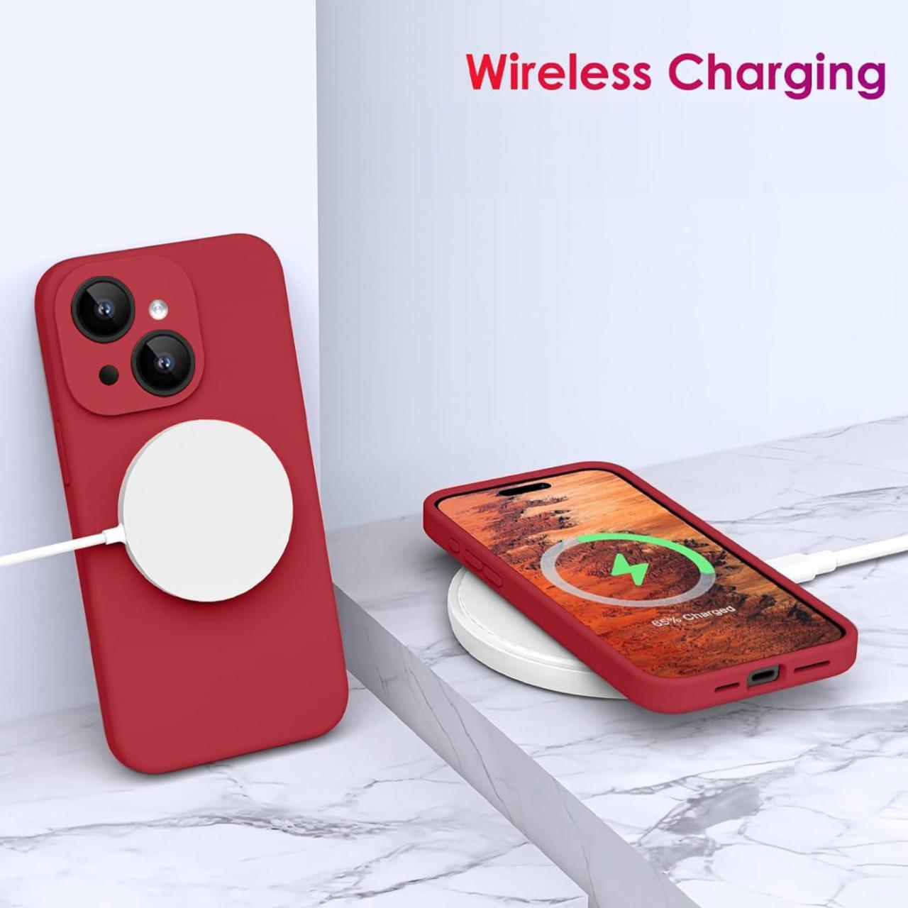 Lemontti Husa Liquid Silicon MagCharge iPhone 15 Visiniu (protectie 360°, material fin, captusit cu microfibra)