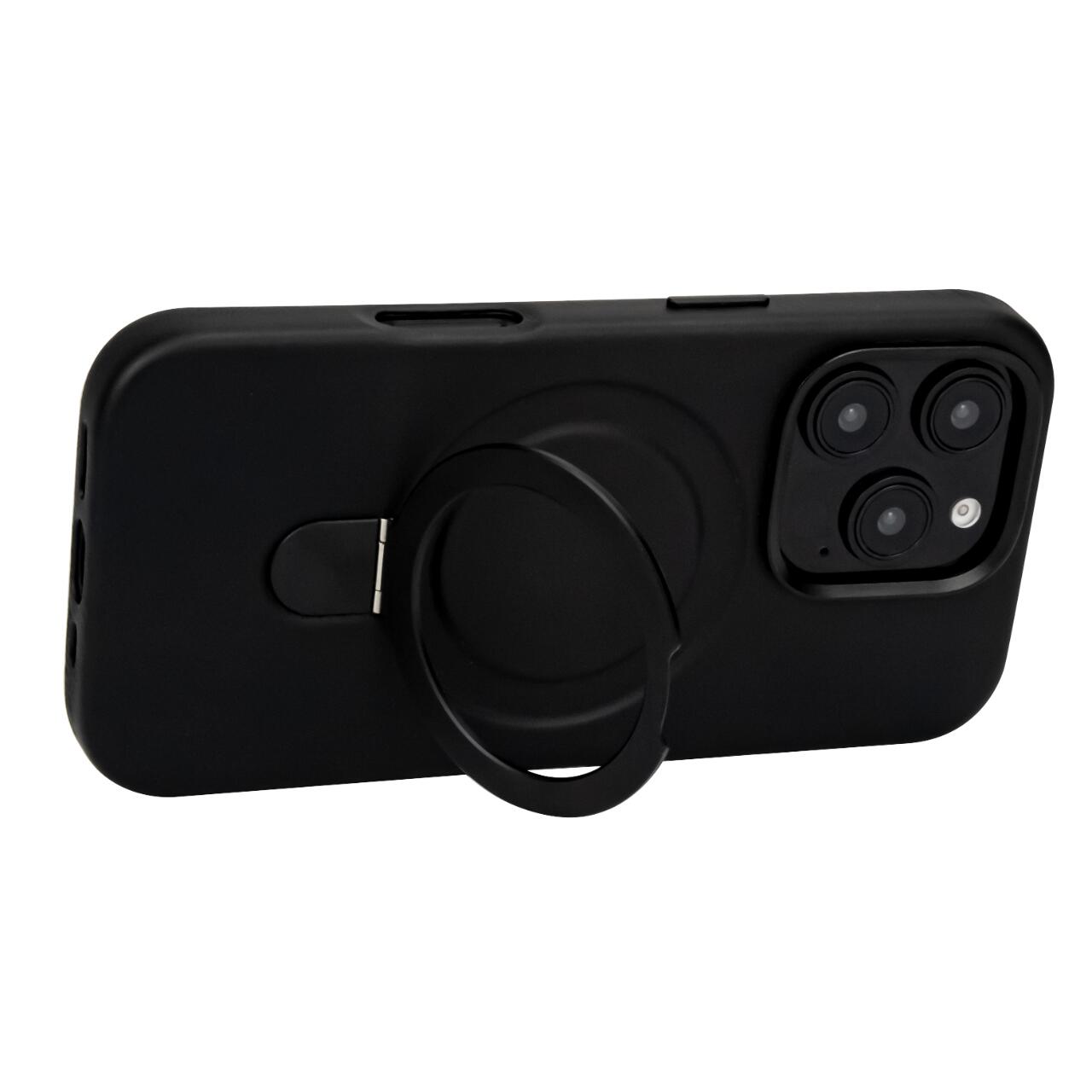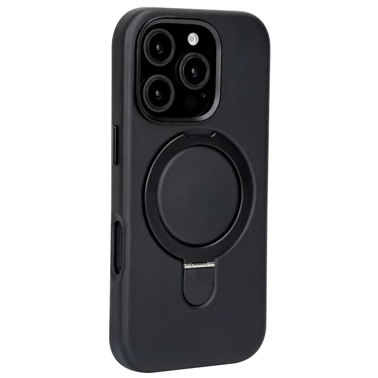 Lemontti Husa Piele MagSafe cu inel stand iPhone 15 Pro Negru
