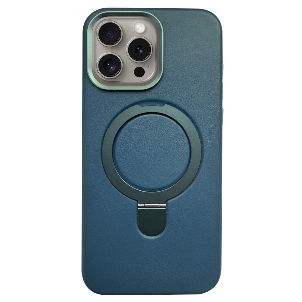 Lemontti Husa Piele MagSafe cu inel stand iPhone 16 Pro Verde