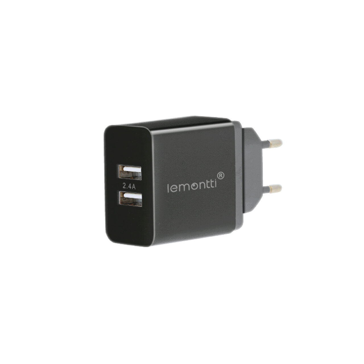 The network charger from Lemontti can simultaneously charge two devices with a maximum current of 2.4A per port. It is made of plastic materials (ABS + PC - Acrylonitrile butadiene styrene + Polycarbonate) resistant to everyday wear.