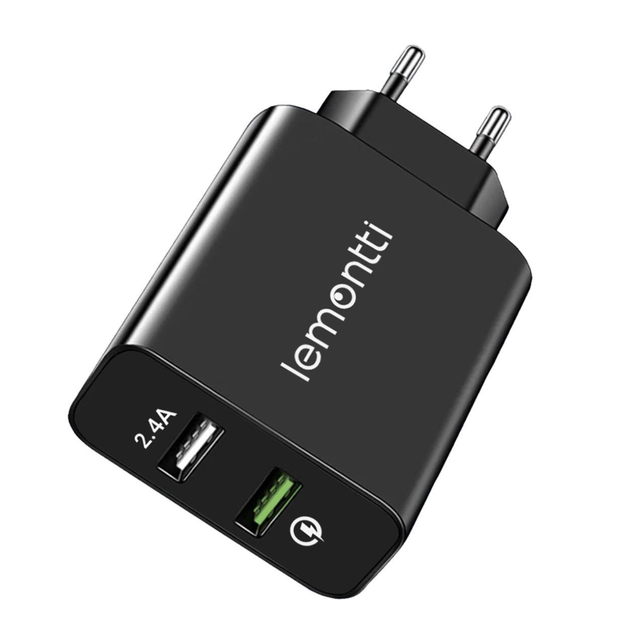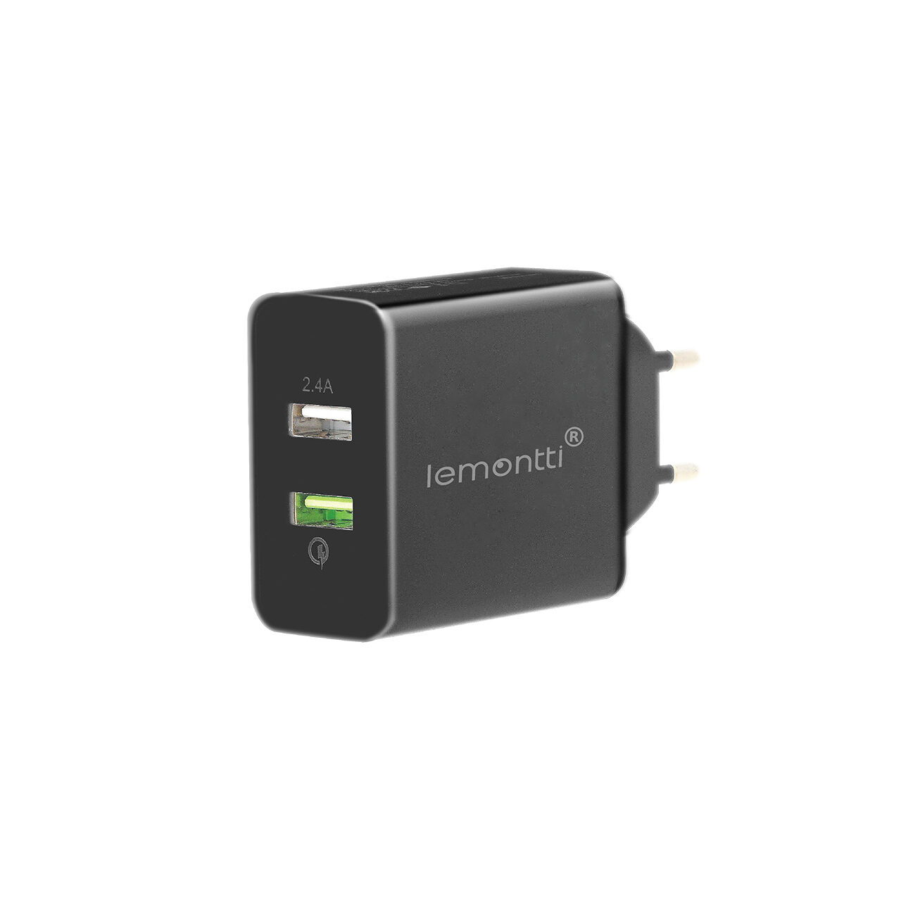 Lemontti Quick Charge Dual USB Network Charger Black (QC port max 3.1A, USB port 2.4A)