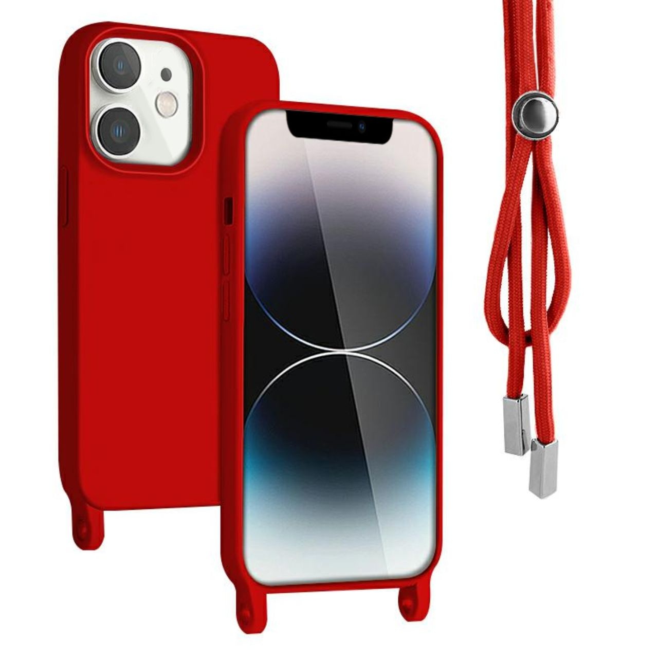 Lemontti Silicone Case with Lanyard iPhone 12 / 12 Pro Red (360° protection, fine material, lined with microfiber)