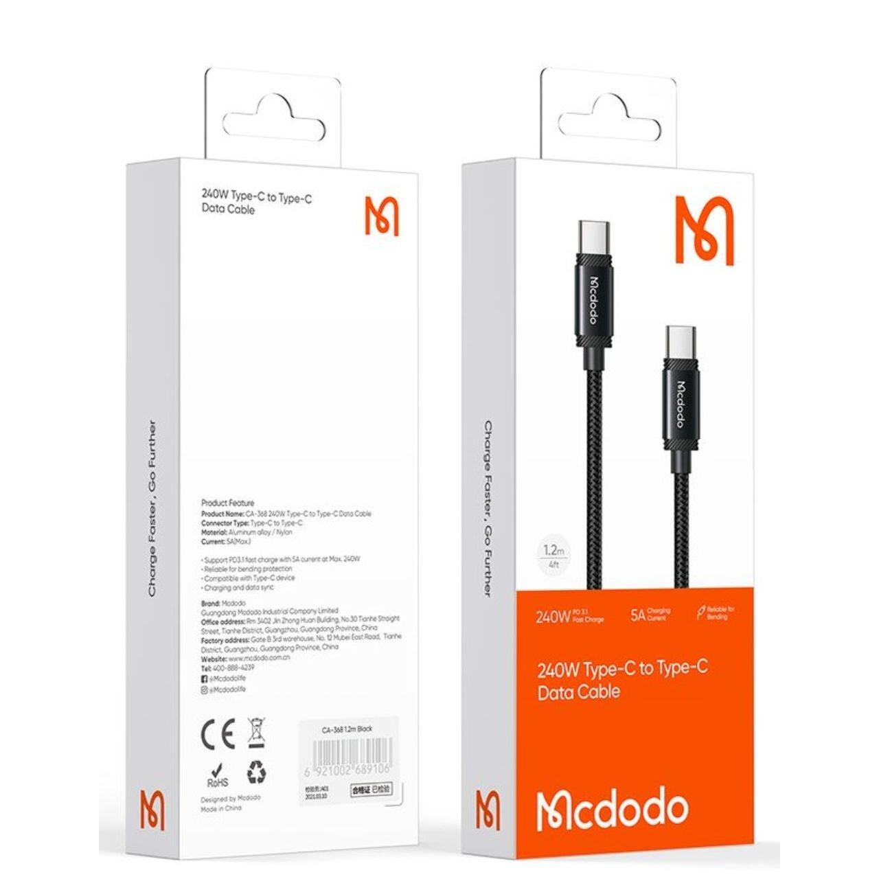 Mcdodo Cablu Type-C la Type-C Super Fast Charging, 240W, 1.2m, Negru-T.Verde 0.18 lei/buc