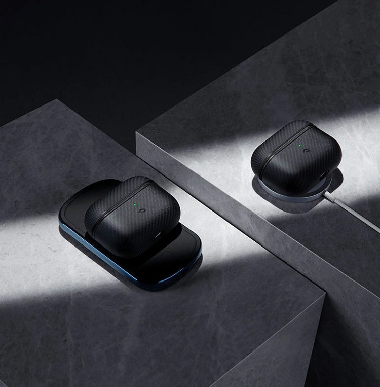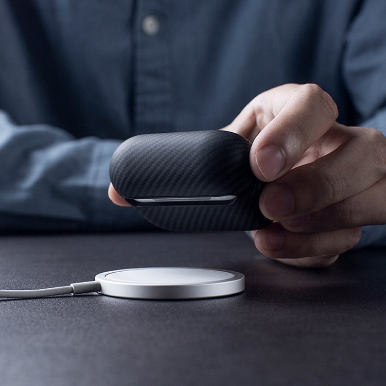 The MagEZ 2 MagSafe case for Airpods Pro from Pitaka is made of a very light and resistant aramid fiber, which is not afraid of scratches and does not crack when dropped from a height. The cover is made of a material so pleasant to the touch, it does not slip in the hand or on the table and almost does not increase the weight and dimensions of the gadget. The model compatible with the wireless charger leaves the indicators on the headphone case visible.