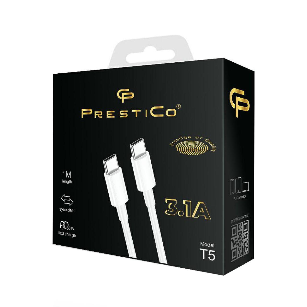 Prestico Cablu T5 Type-C la Type-C Fast Charge, PD, 60W, 1m, Alb -T.Verde 0.18 lei/buc