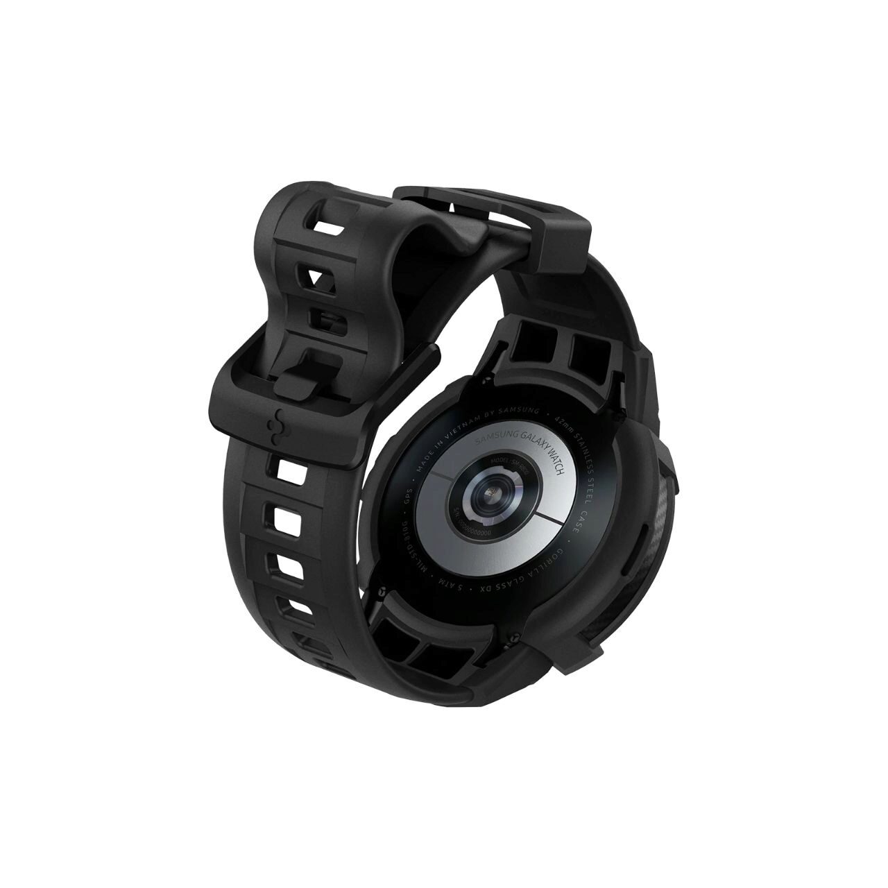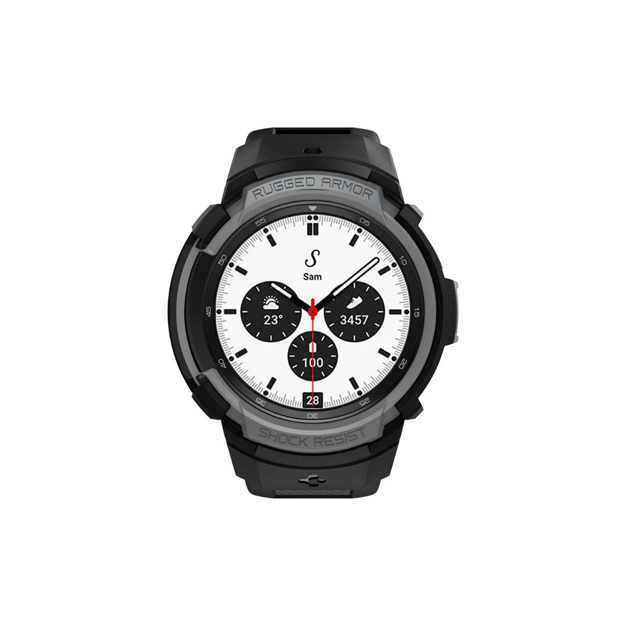 The Rugged Armor Pro strap for the Galaxy Watch 4 Classic 42mm from Spigen has a modern design and a pleasant appearance that protects your watch with the help of layers that absorb mechanical shocks, the raised edges around the screen and the improved metal buckle.