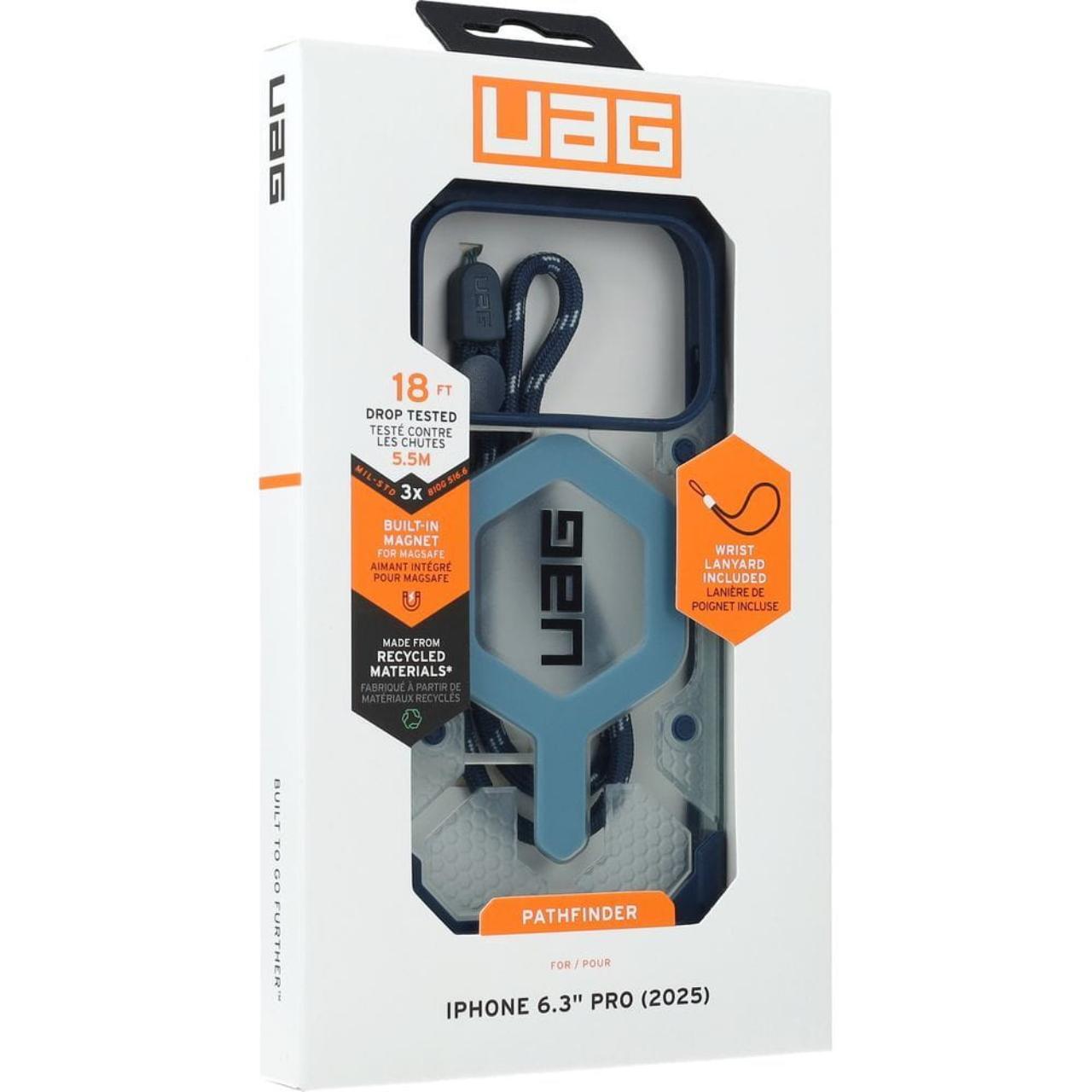 UAG Husa Pathfinder Clear MagSafe iPhone 17 Pro Blues Lanyard