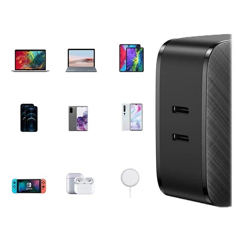 The Priza Quick Charger 65W charger from Ugreen is a compact charger from UGREEN, equipped with 2 USB-C ports and allows you to quickly charge 2 devices simultaneously. Its maximum output power is 65W. It is compatible with most phones and laptops. It supports various fast charging protocols and ensures the safety of reliable use.