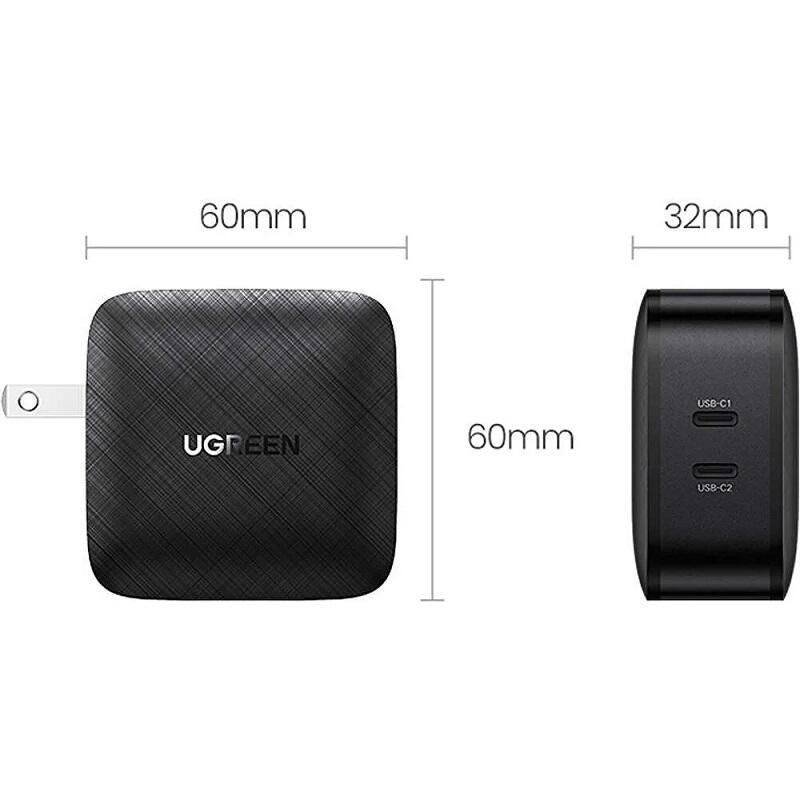 Ugreen Quick Charger 65W, 2 x USB Type-C 5V/3A, Black