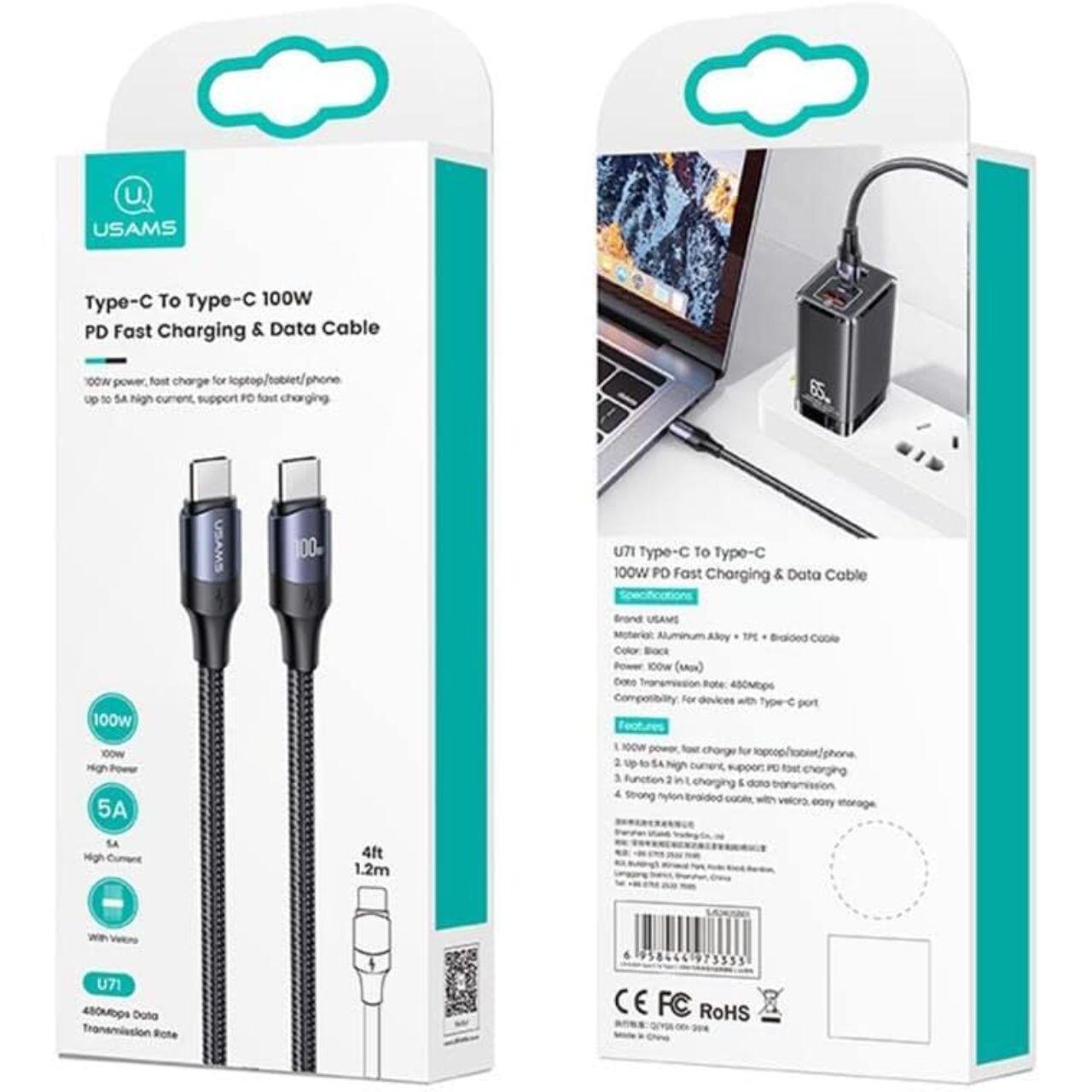 Usams Cablu US-SJ524 Type-C la Type-C PD, Fast Charging, 100W, 1.2m Negru -T.Verde 0.18 lei/buc