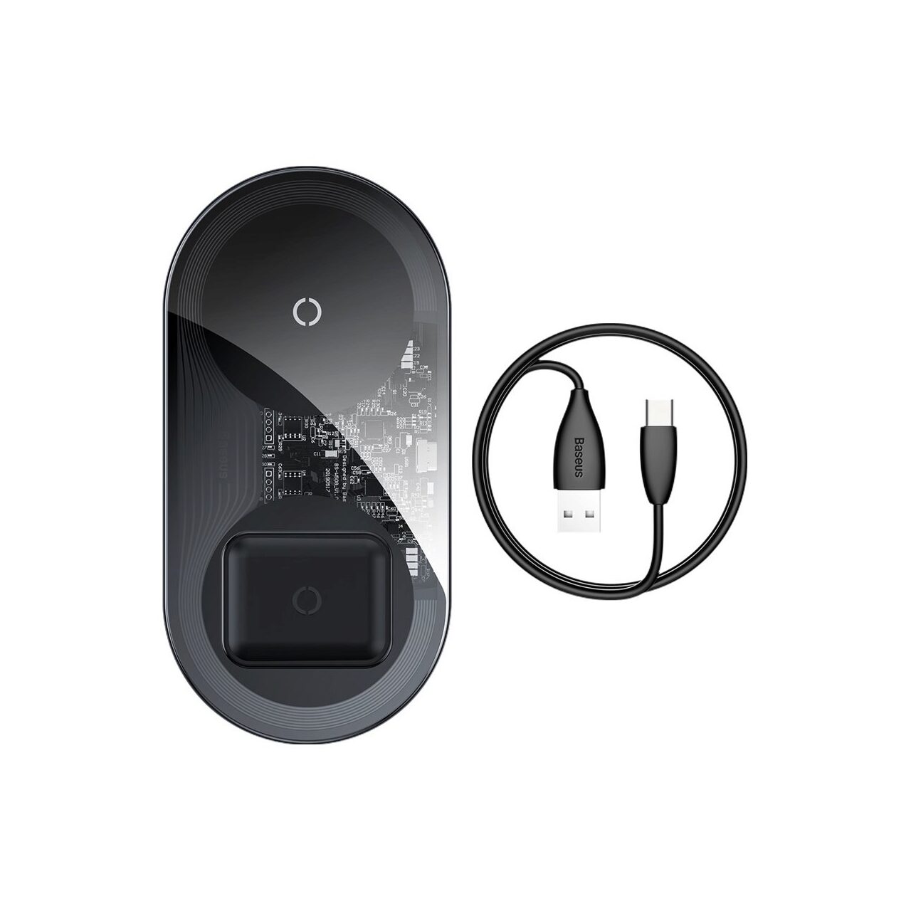 Baseus Simple 2 in 1 Wireless Charger Transparent Black (for phones and AirPods)
