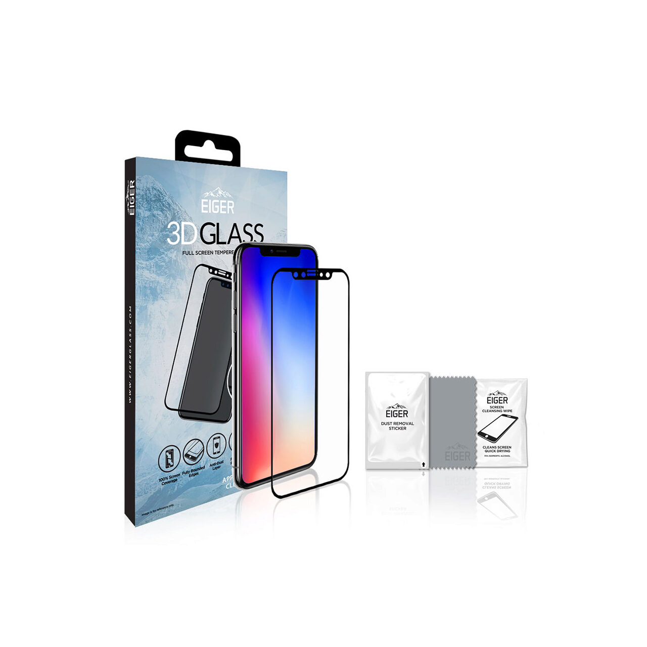 Eiger Folie Sticla 3D Edge to Edge iPhone 11 Pro / XS / X Clear Black (0.33mm, 9H, perfect fit, curved, oleophobic)
