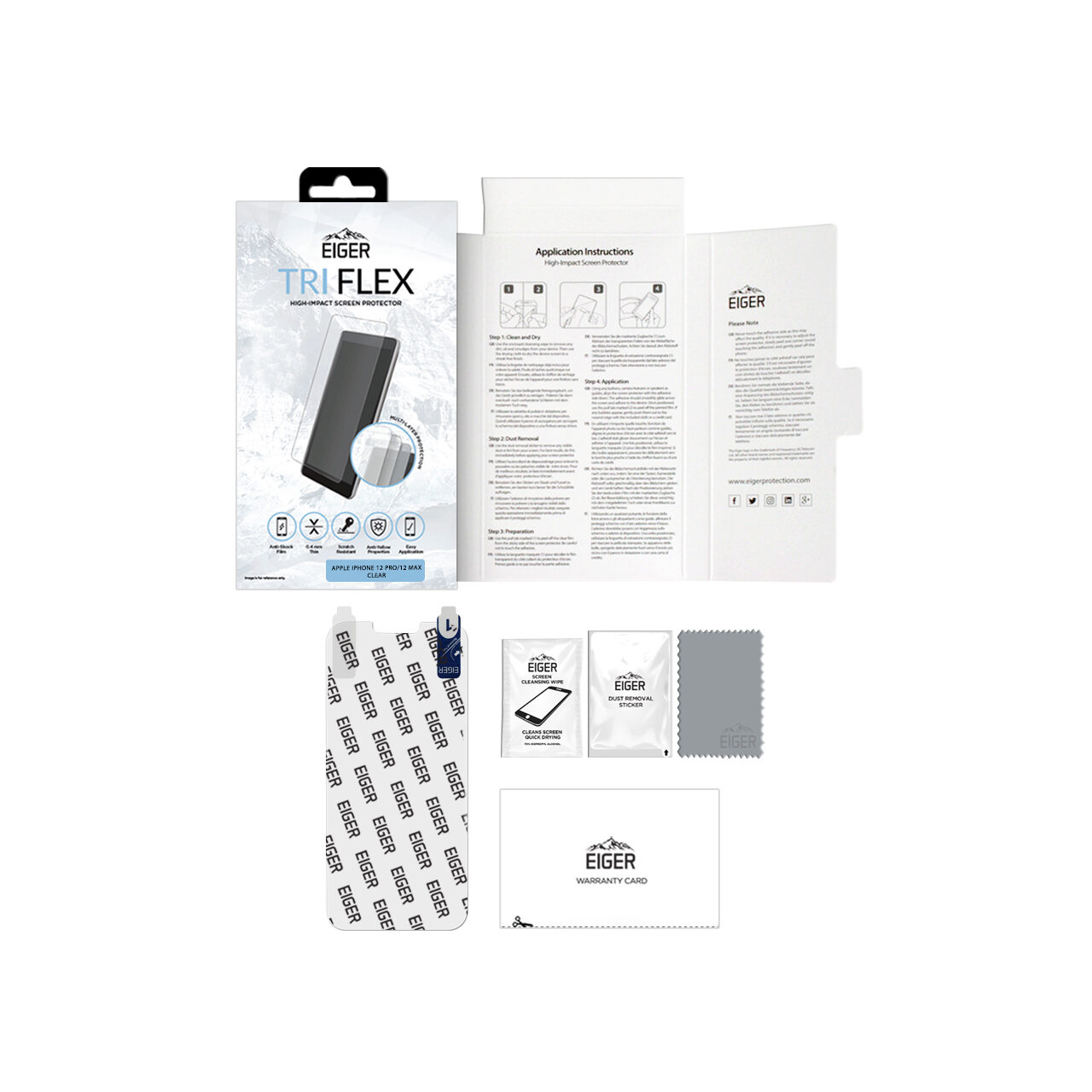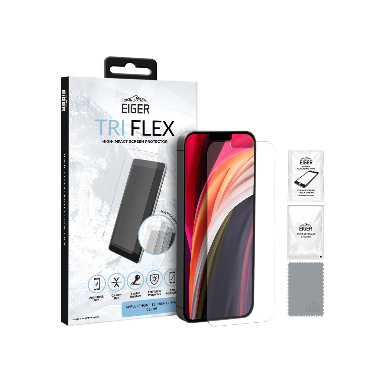 Eiger Folie Clear Tri Flex iPhone 12 / 12 Pro (0.4 mm, 5H)