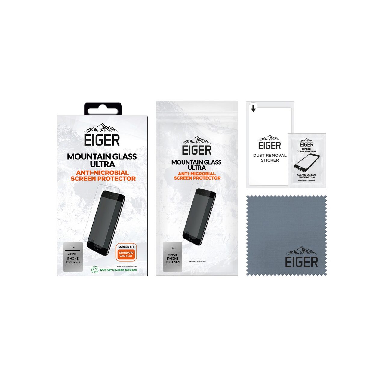 Eiger Folie Sticla Mountain Glass Ultra iPhone 13 / 13 Pro Clear (0.33mm, 9H, antimicrobian)