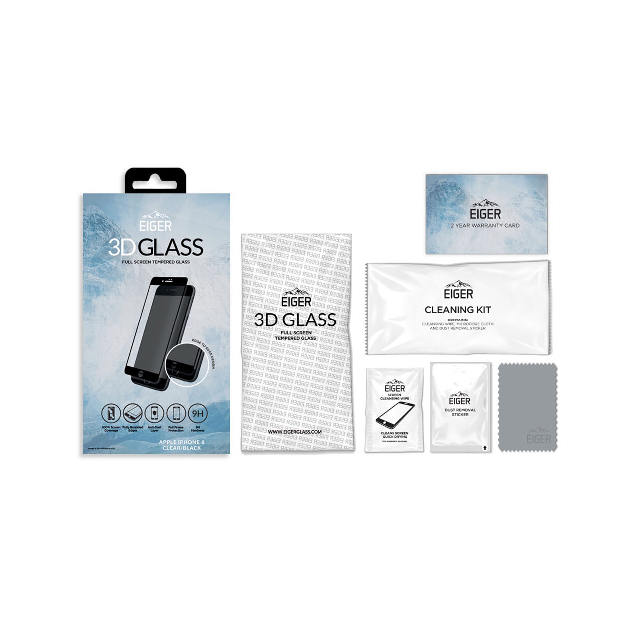 Eiger Folie Sticla 3D Edge to Edge GRS iPhone SE 2020 / 8 / 7 / 6s / 6 Clear Black (0.33mm, 9H, perfect fit, curved, oleophobic)