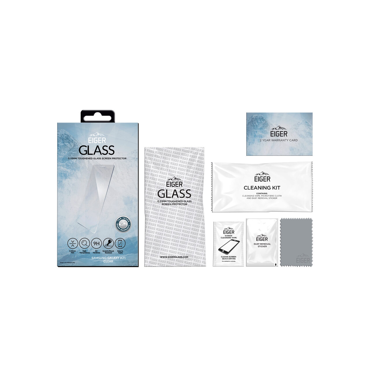 Eiger Folie Sticla Temperata Samsung Galaxy A21 Clear (9H, 2.5D, 0.33mm)