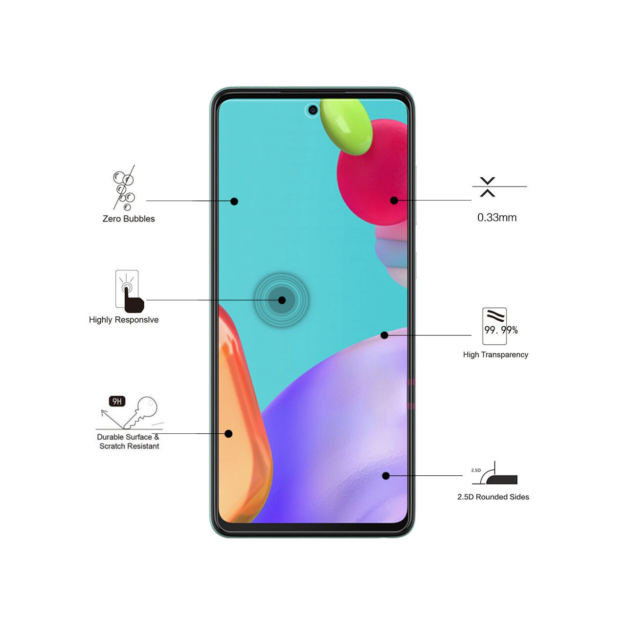 Folie de sticla temperata pentru Samsung Galaxy A52s / A52 5G / A52 4G este o folie premium din sticla temperata (securizata), foarte rezistenta la zgarieturi si socuri. Ofera protectie de lunga durata impotriva zgarieturilor si acopera ecranul pana aproape de margini.