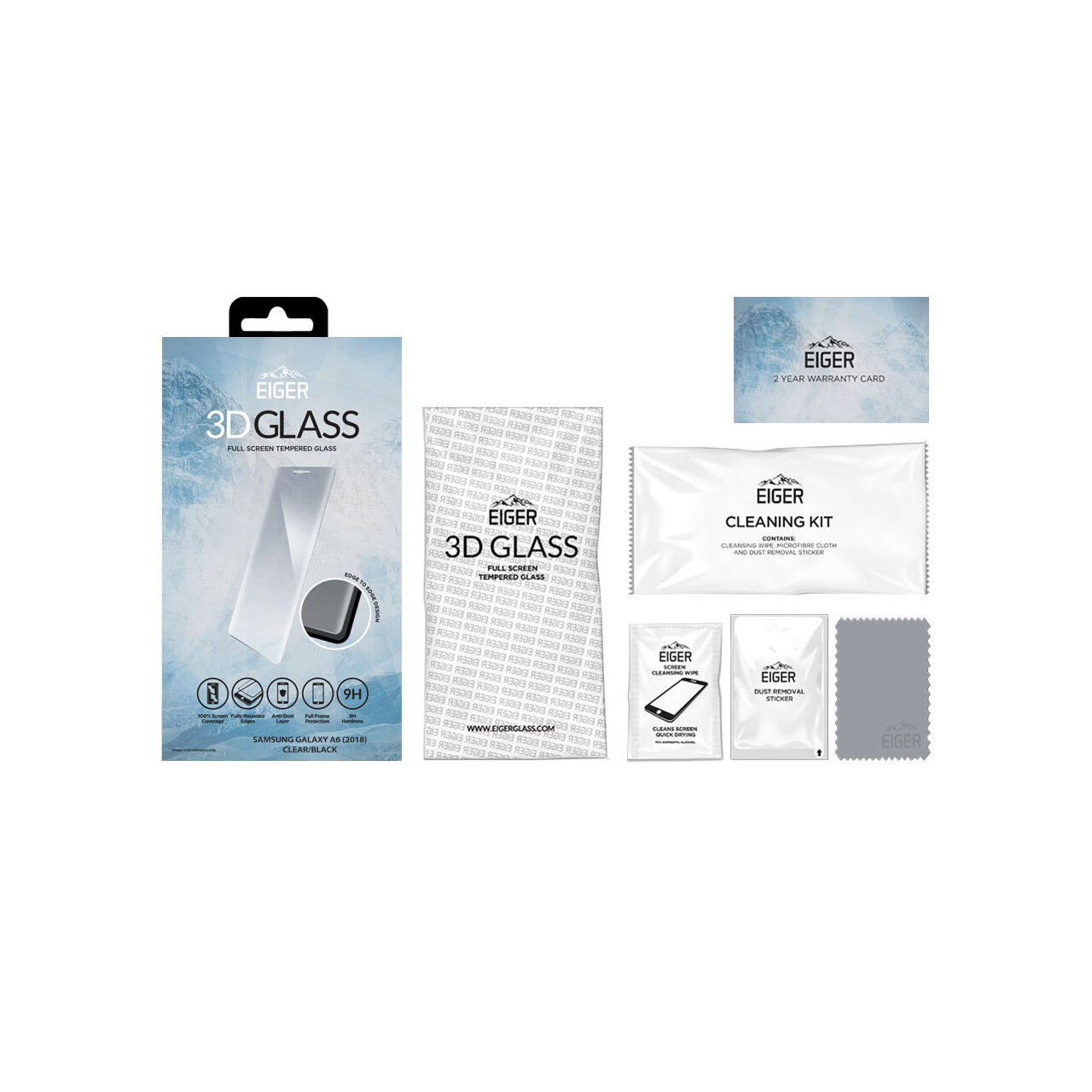 Eiger Folie Sticla 3D Edge to Edge Samsung Galaxy A6 (2018) Clear Black (0.33mm, 9H, perfect fit, curved, oleophobic)
