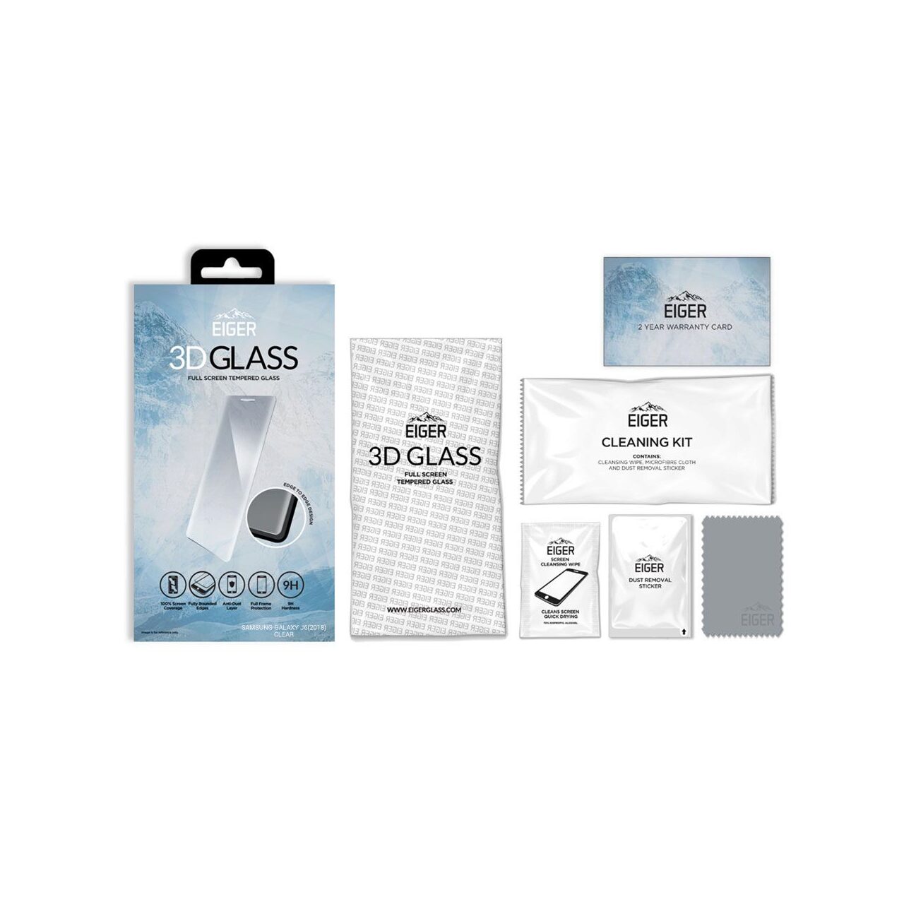 Eiger Folie Sticla 3D Edge to Edge Samsung Galaxy J6 (2018) Clear (0.33mm, 9H, perfect fit, curved, oleophobic)