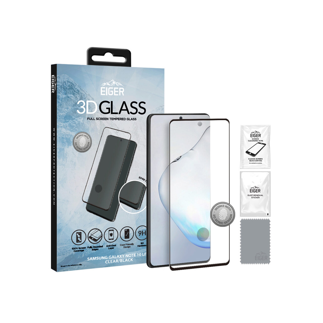 Eiger Folie Sticla 3D Edge to Edge Samsung Galaxy Note 10 Lite Clear Black (0.33mm, 9H, perfect fit, curved, oleophobic)