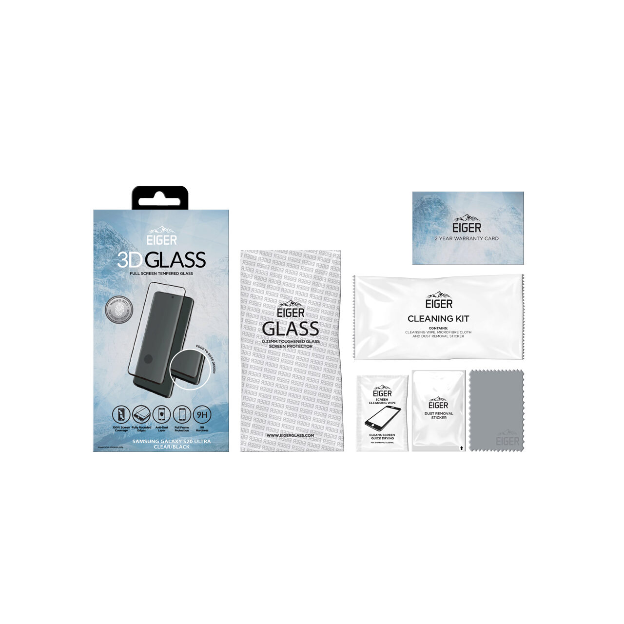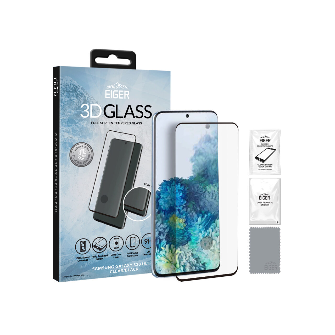 Eiger Folie Sticla 3D Edge to Edge Samsung Galaxy S20 Ultra Clear Black (0.33mm, 9H, perfect fit, curved, oleophobic)