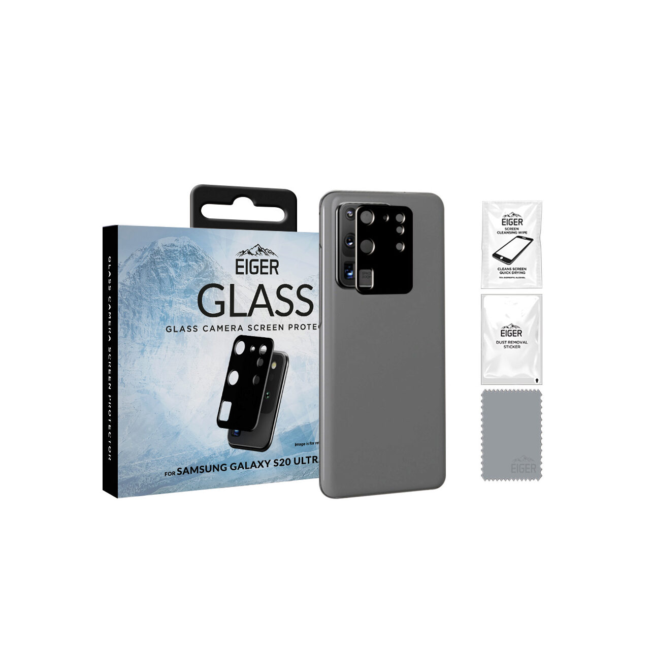 Eiger Lentile Camera Glass Samsung Galaxy S20 Ultra Clear Black (9H, 0.33mm)