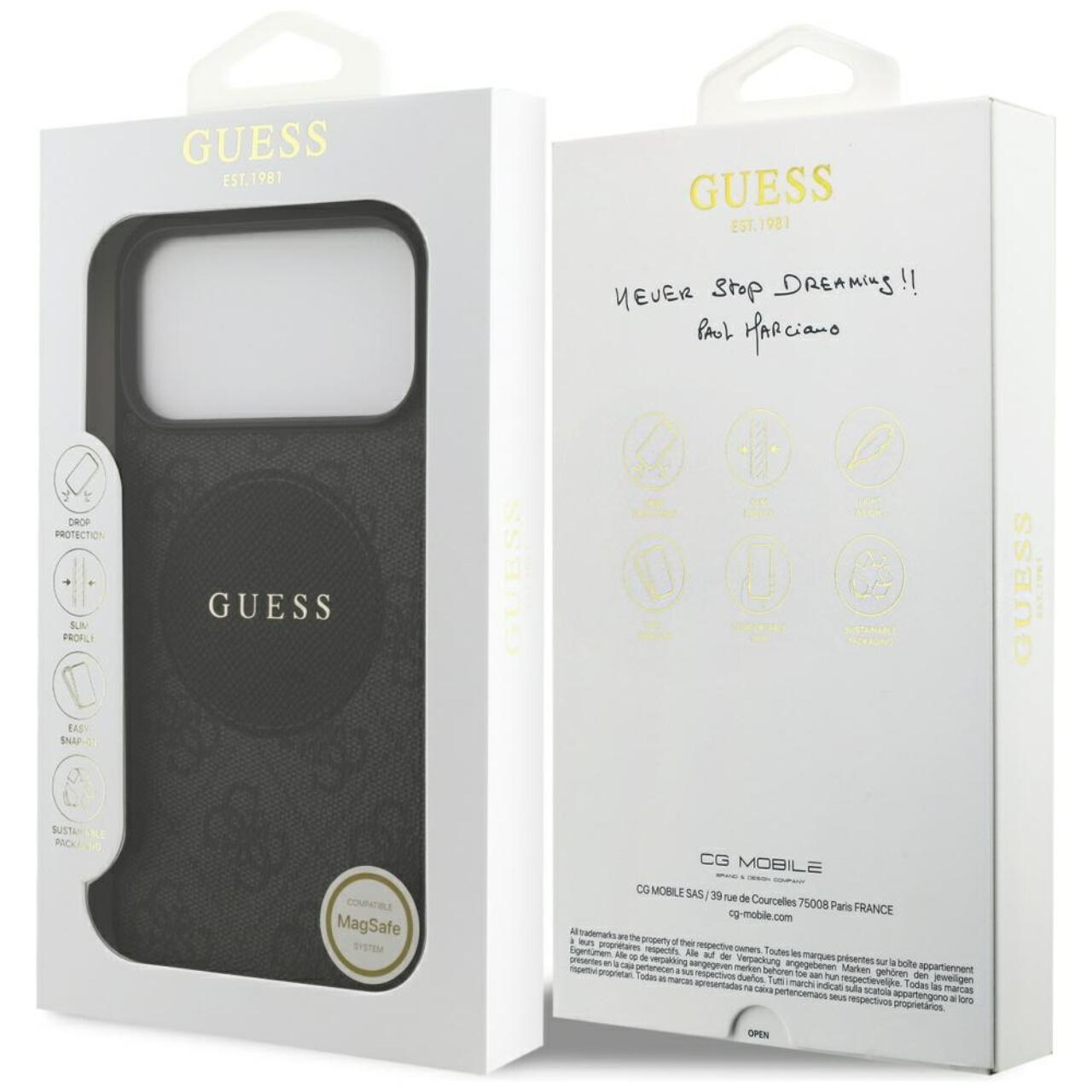 Husa 4G Circle Classic Logo MagSafe iPhone 17 Pro de la Guess, ofera echilibrul perfect intre eleganta, functionalitate si protectie. Designul sau subtire si rafinat completeaza perfect liniile telefonului, fara a adauga volum inutil.
