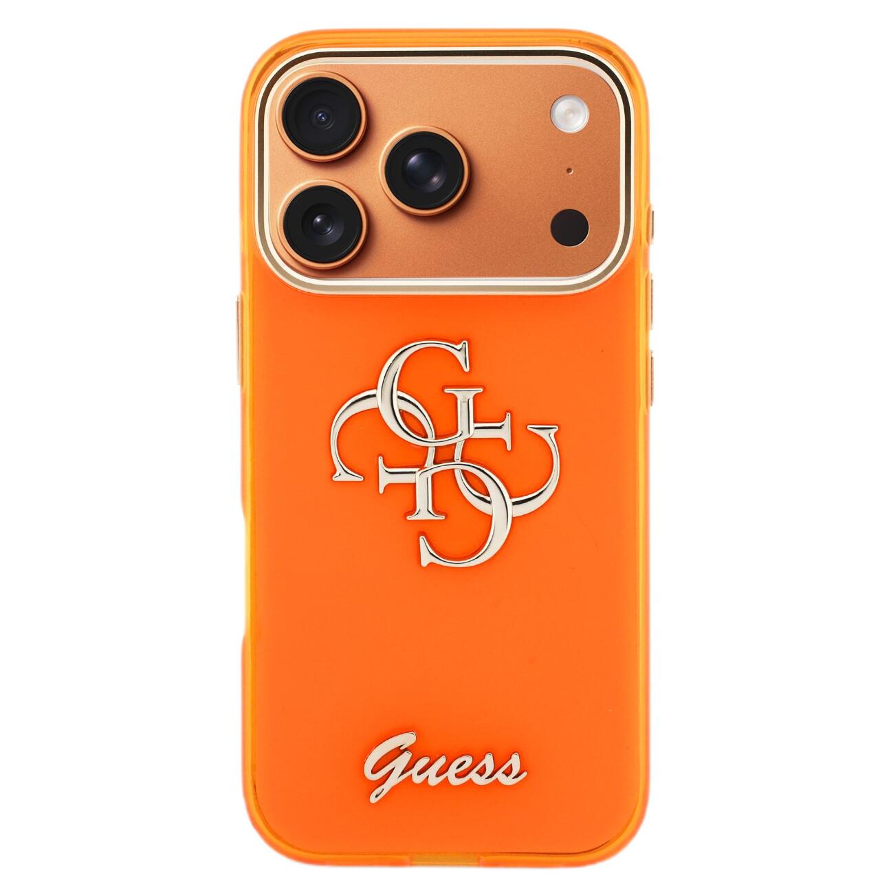 Guess Husa 4G Script Metal Logo iPhone 17 Pro Portocaliu