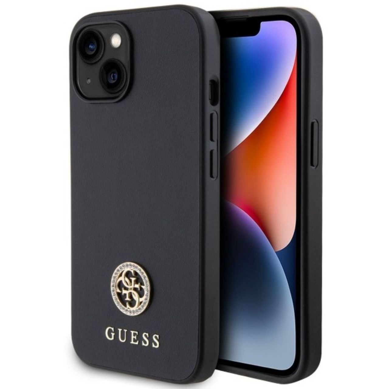 Guess Husa 4G Strass Metal Logo iPhone 15 Negru