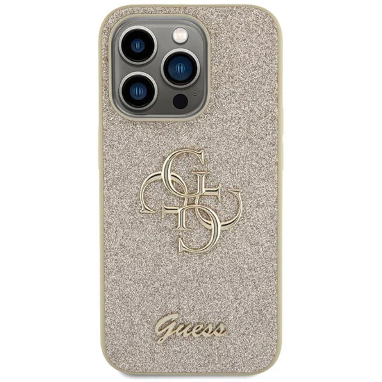 Guess Husa Fixed Glitter 4G Metal Logo iPhone 15 Pro Auriu