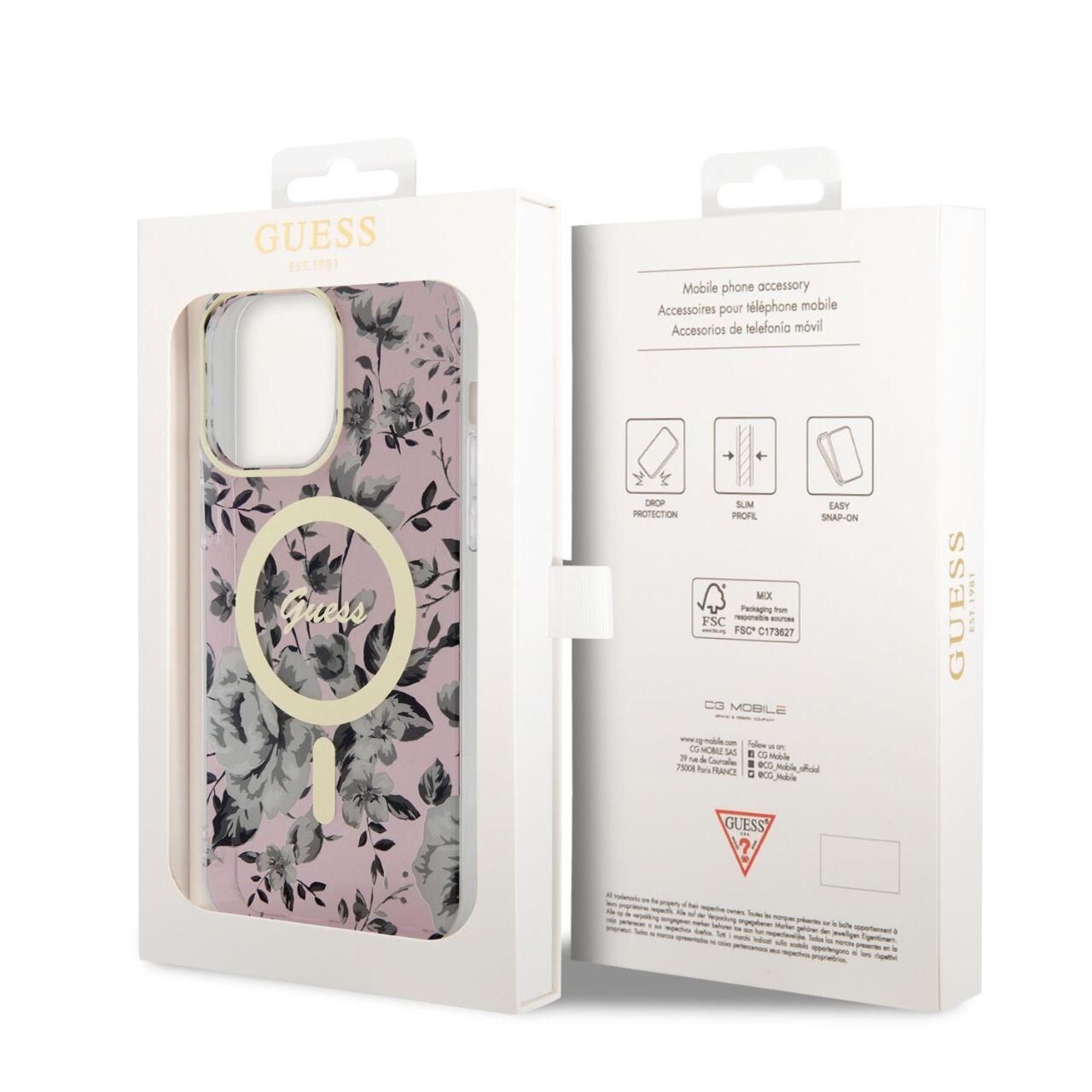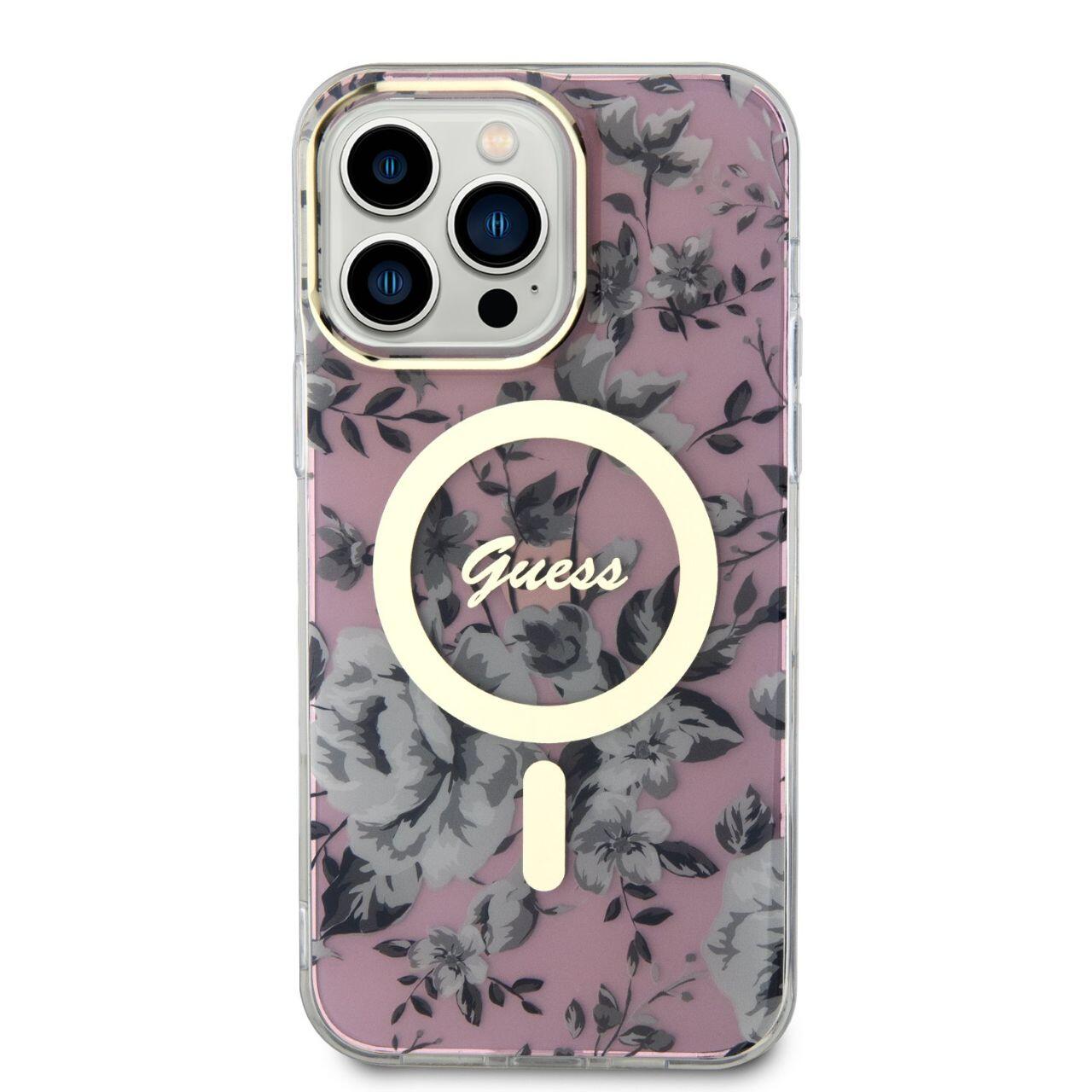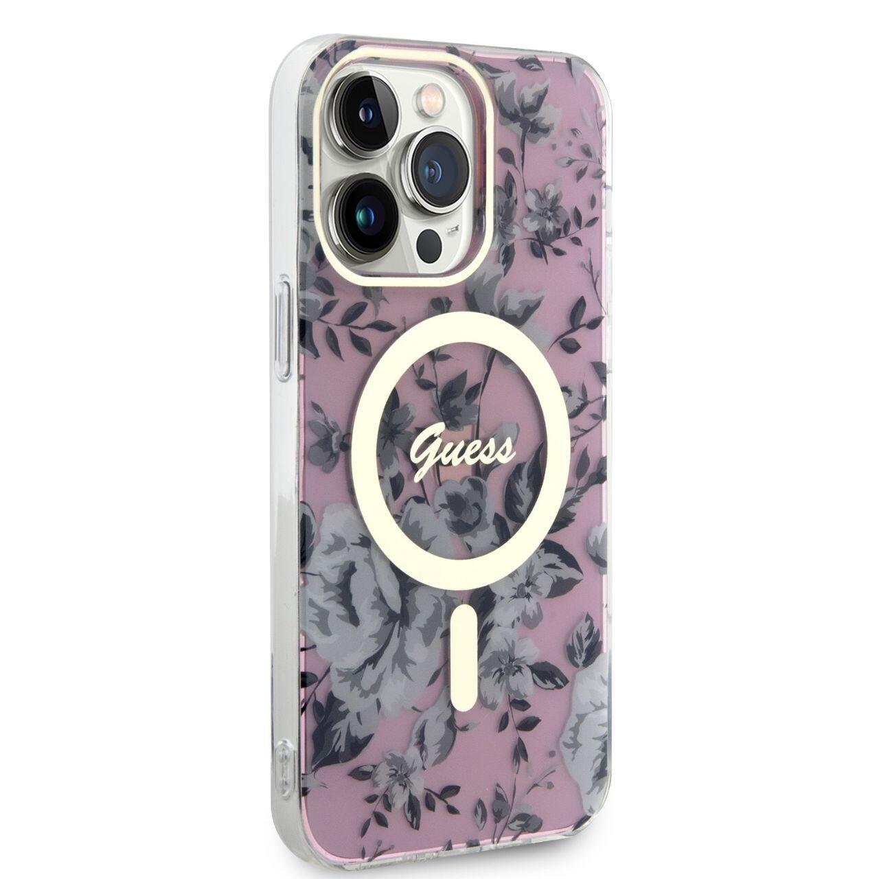 Guess Husa Flowers MagSafe iPhone 14 Pro Roz